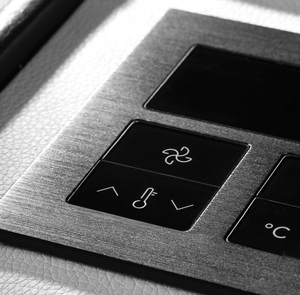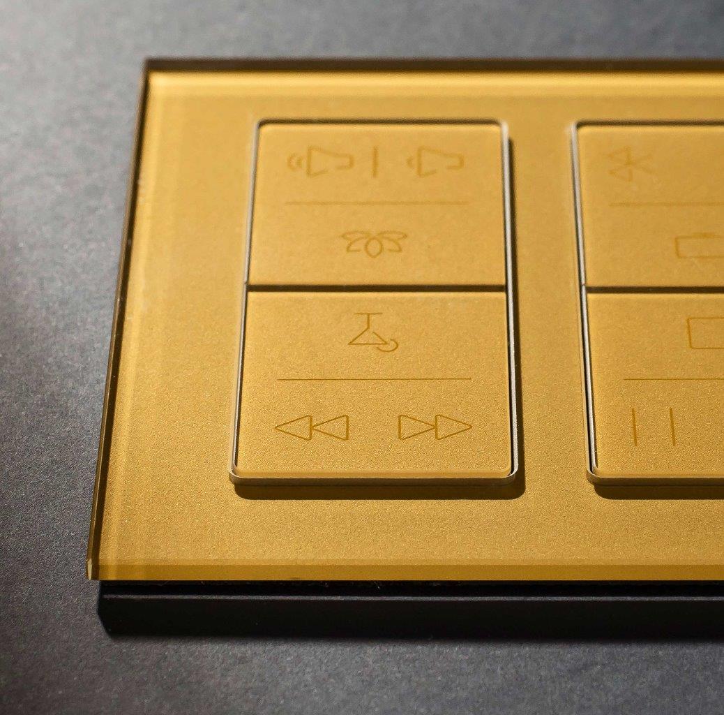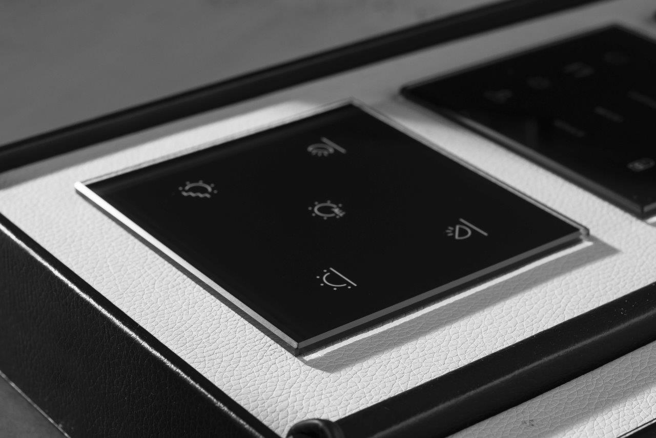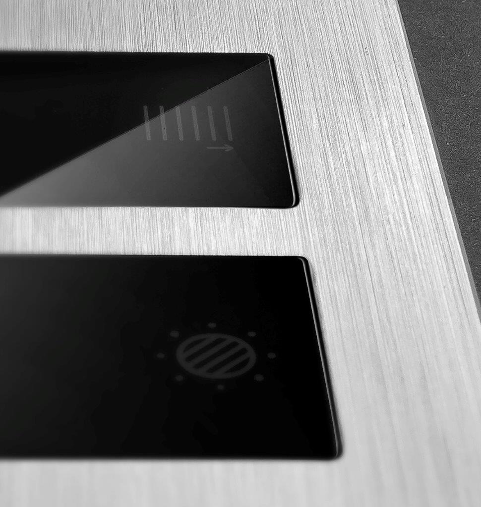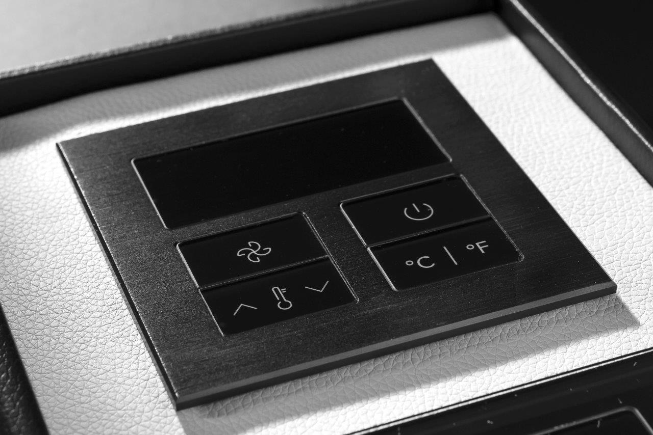 Large, easy-to-use buttons with engraved icons and texts are flush into the design frame creating a perfectly smooth surface. A subtle click confirms user touch.