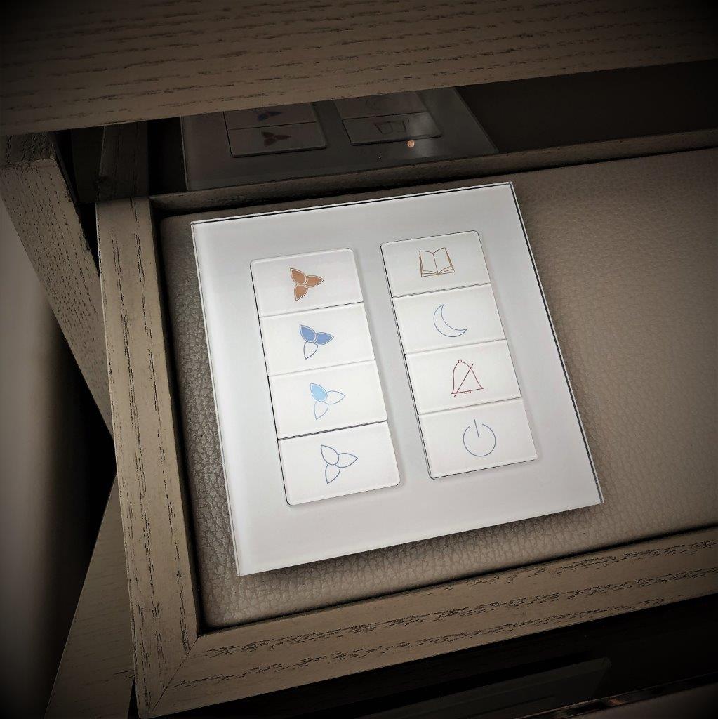 The ARIA collection is available in different control configurations up to 12 control buttons and a thermostat control panel with built-in temperature and humidity sensor.
