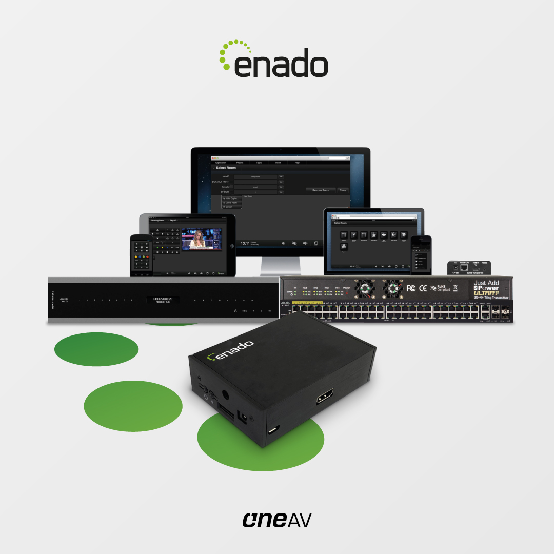James Trumper, Director of OneAV comments on Enado: “We are asked on a regular basis by our customers which control system is the best to use with the solutions we supply. Until meeting the team at Enado, it has always been a difficult recommendation! Is the installation residential or commercial, what level of control do you want to provide your customer, what is their budget etc. Now OneAV is able to recommend and supply Enado, a solution that can control almost every connected device at a price that just cannot be beaten within the market. We have worked closely with Enado to ensure that products like HDANYWHERE and Just Add Power are seamlessly integrated and deliver full integration with their unique features such as HDA IP>IR system.”
