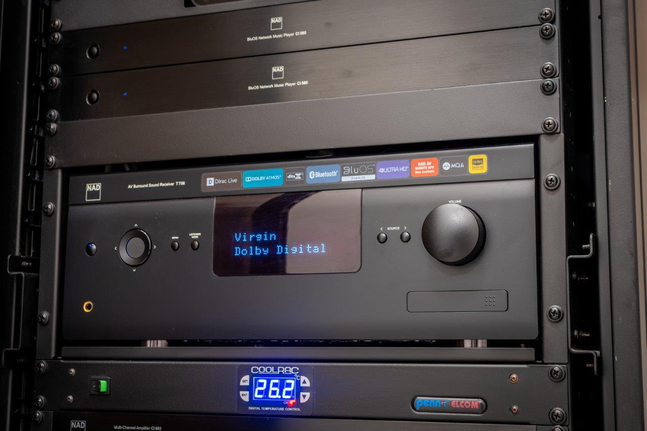“The backbone of this system is NAD’s range of rack mount streamers and amplifiers, and we like the fact that these are developed purely for installers, while one of the rooms, where we couldn’t install speakers fed from the rack we used a Bluesound PULSE 2i wireless speaker, and we have the option to add more Bluesound Players if we need to expand the system down the line. In the media room, we used an NAD AV receiver, which was also based in the rack. All of the products use the same BluOS streaming platform, so the ecosystem can be controlled via the same BluOS app, or the client can cast directly to each zone.”