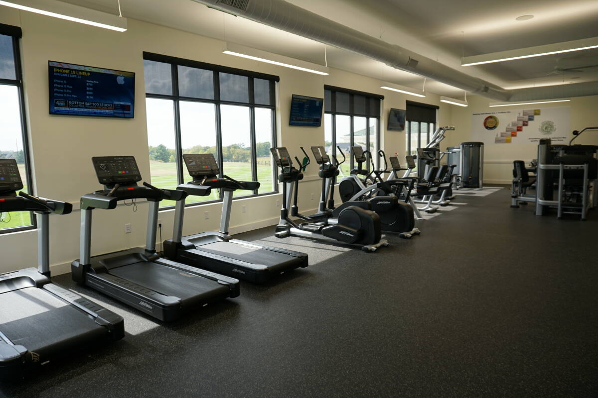 Strategically placed throughout the multipurpose facility are dozens of speakers and displays delivering a curated playlist of music and video to members as they grab a bite at the café, break a sweat at the gym, or practise a few swings at the golf simulator.
