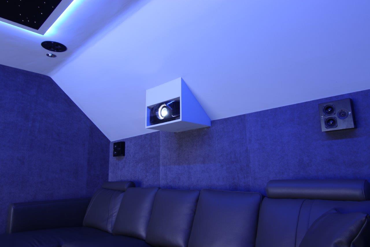 The cinema was designed as an Atmos 5.1.2 set up using Artcoustic speakers, including the meaty 1KW 4x10in Performance 4 subwoofer which was hidden behind the screen within the attics’ (fortunately rather large) eaves. This space also housed the front LCR Spitfire speakers.