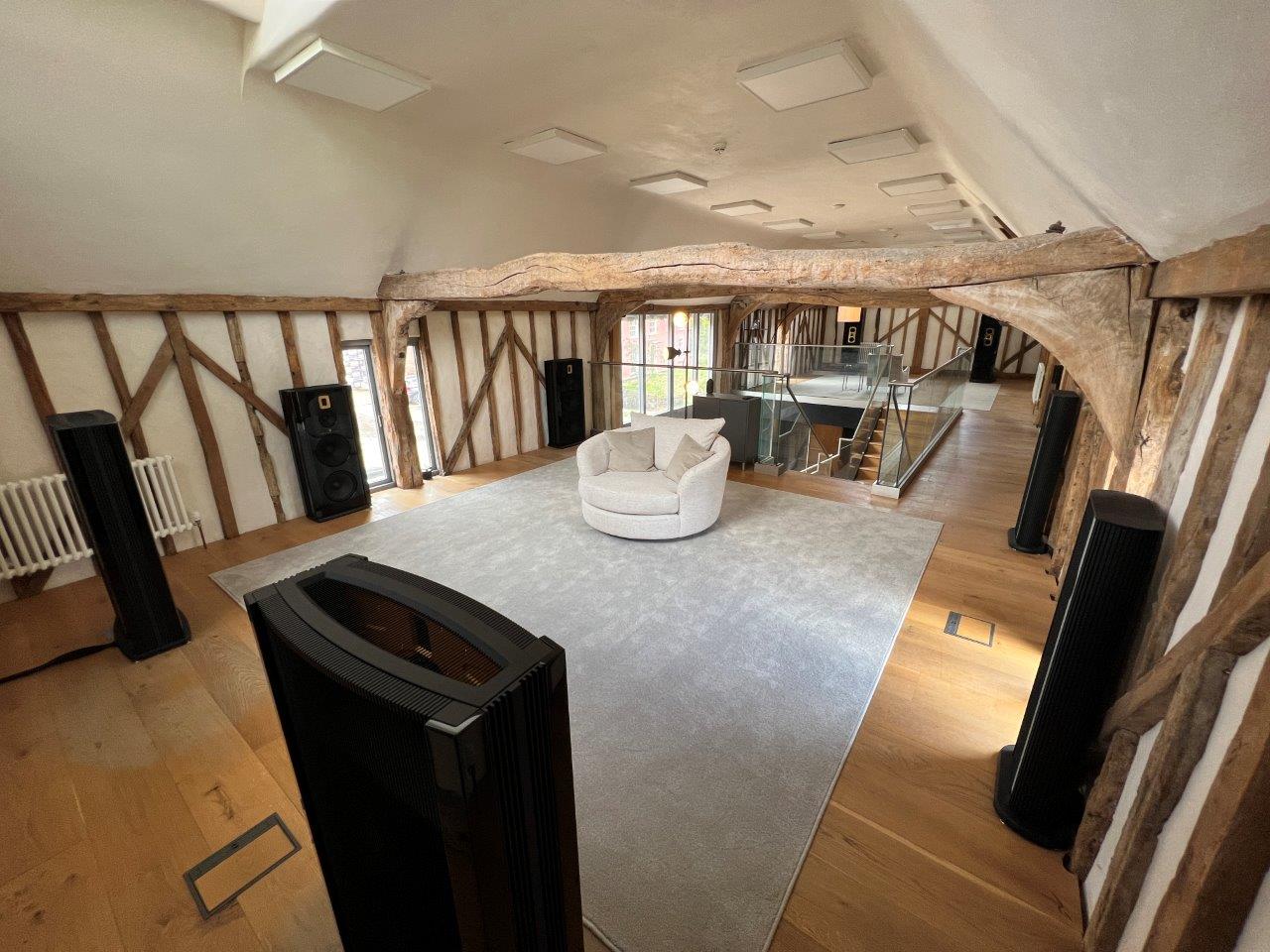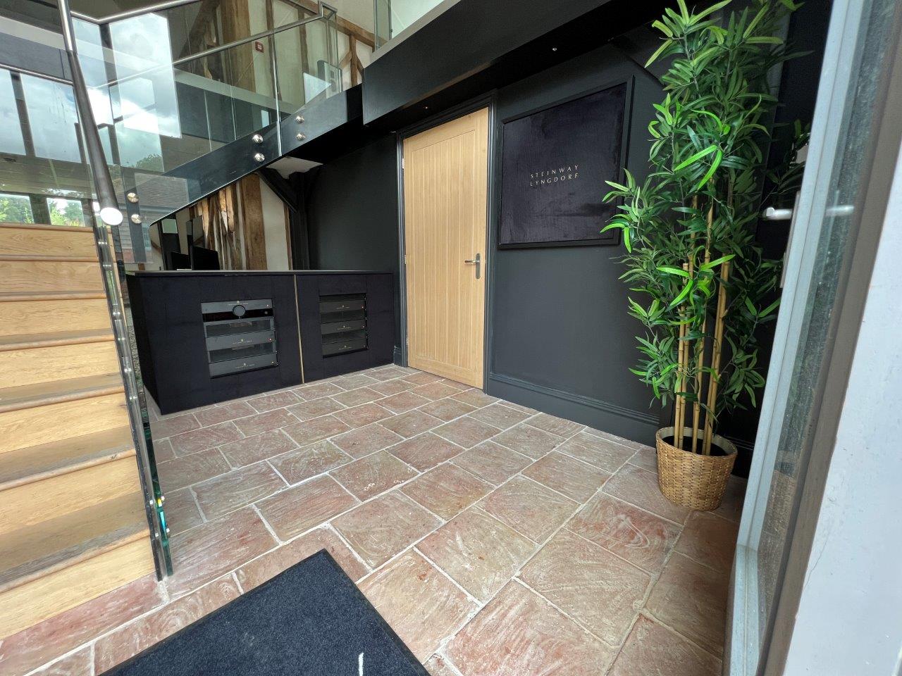 In October of 2021 it was announced that after establishing a new company in the UK, the Lyngdorf Audio and Steinway Lyngdorf brands would be supplied to dealers and installers direct, with the maker appointing a new team to lead this new approach. With Charlie McClarron appointed as Sales Director, later joined by Simon Schino as Sales and Operations Manager, supply direct began in April of 2022. A part of this new approach was always the ambition to build a comprehensive showroom to give installers, dealers and their customers a chance to experience fully what the company has to offer. That ambition is now a reality with this impressive showroom nestled in the North Essex Countryside, residing on a beautiful early Georgian farmstead and equestrian centre called Brook Farm. The showroom is situated in a stunning converted medieval barn, a fine canvas to showcase the different solutions the company can offer, delivering an appropriate backdrop for the client group the team wants to target. The open plan space provides two floors of luxury showroom with the ground floor operating as the Lyndorf Audio showcase and the upstairs catering for the Steinway Lyngdorf products. The ground floor also features a meeting/planning area and an impressive home cinema showcasing both brands.