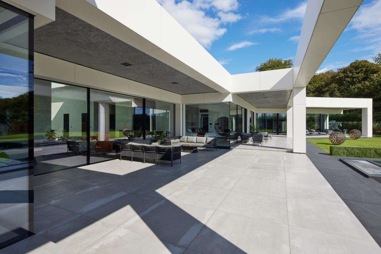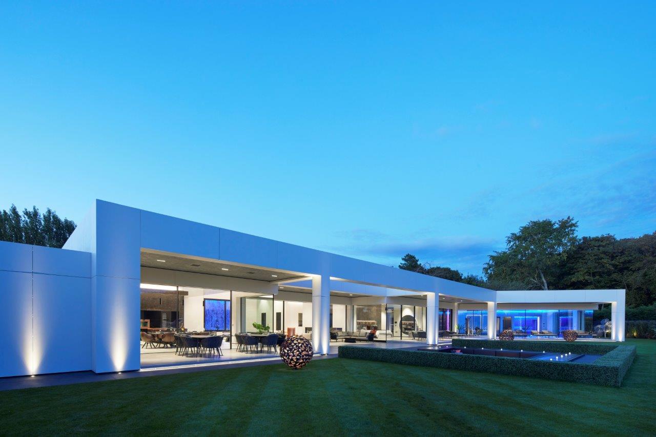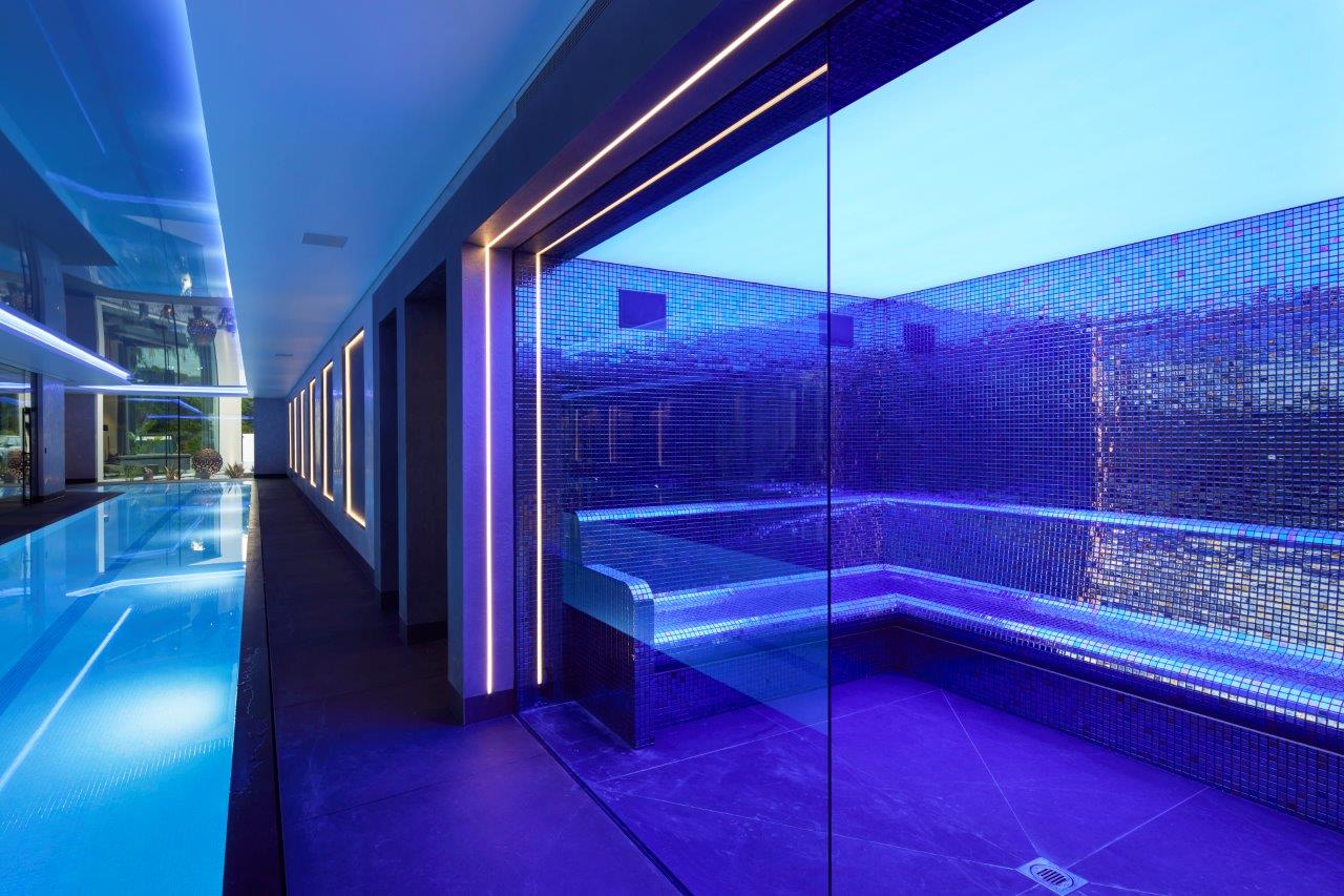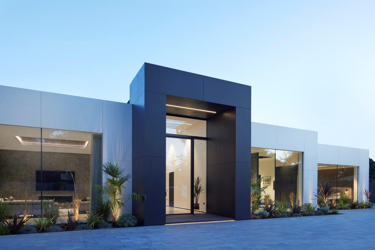 Built in the 1950s, this striking 13,000ft² contemporary home offers a stunning, living space inside and out, including an Olympic-length swimming pool, a high-end gym, nine bathrooms and open plan communal spaces that adapt to the client’s needs at the touch of a button.