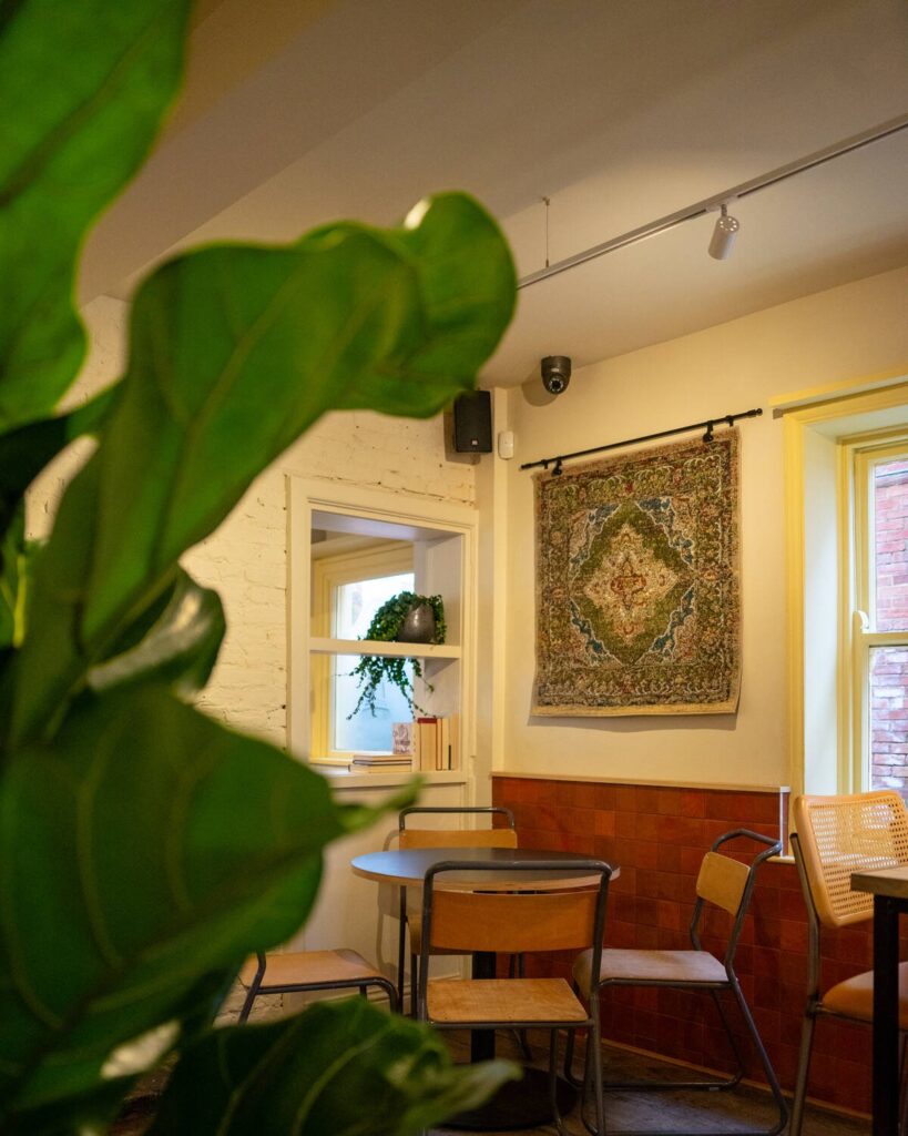 The main guest area occupies the ground floor and serves coffee, brunch and cocktails. Here, four Optimal Audio Cuboid 5s are discretely wall-mounted to deliver the house audio, supplied through audio streaming service, Startle Music.