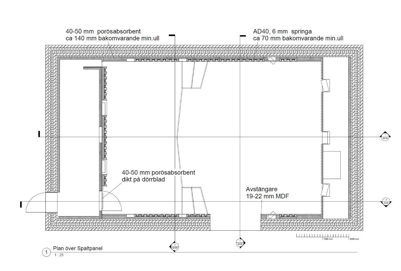 Room acoustics: SMT AD40 Diffusers on walls, Ecophon absorbers in ceiling, bas traps in floor and booth