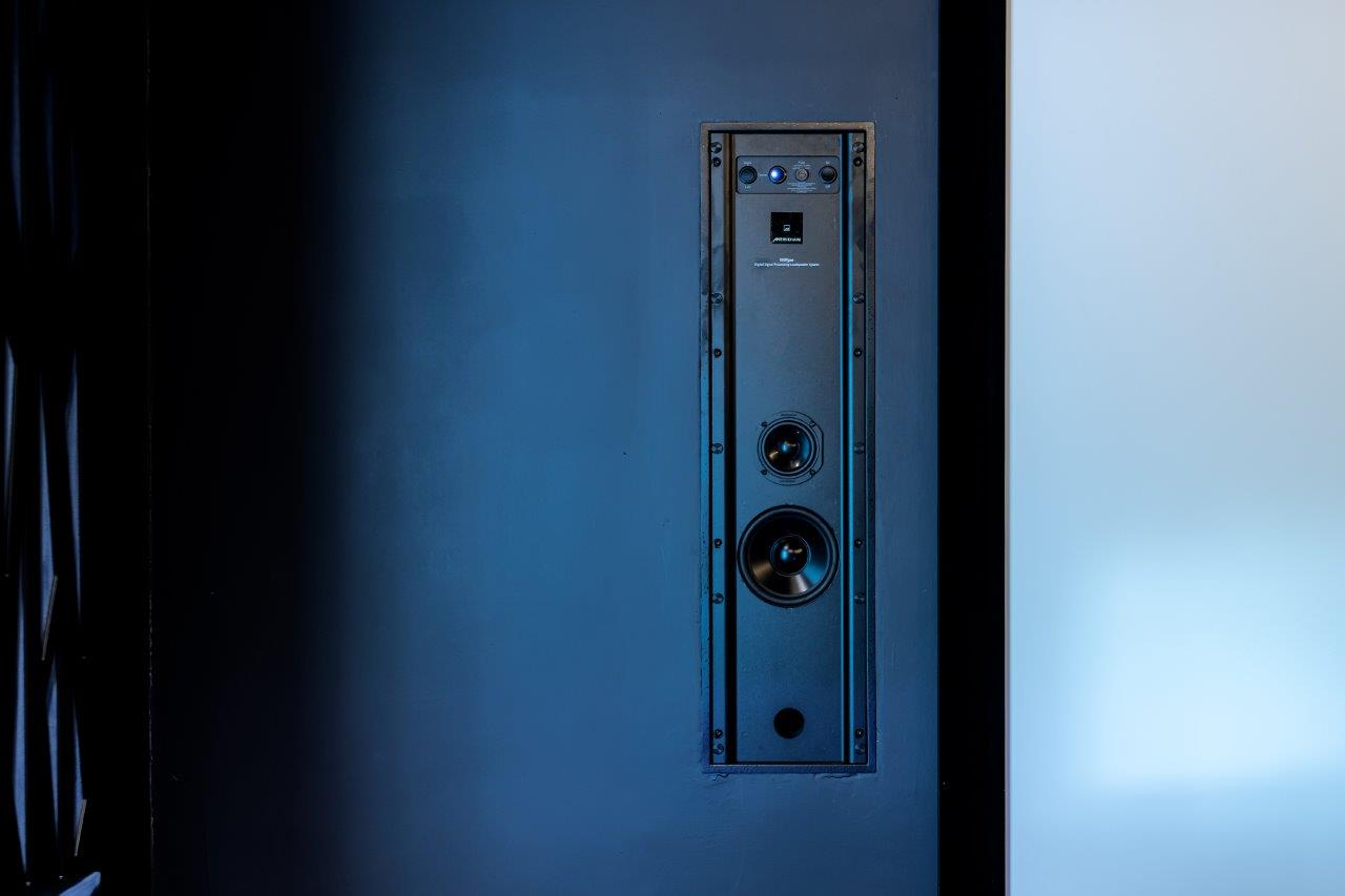 Meridian’s floor-standing loudspeakers including Enhanced Bass Alignment and Centre Elevation, providing lifelike and spacious sound. These powerful, full range in-wall solutions require only a 100mm mounting depth and produce wide sound dispersion over the listening area. Enough space was left around these speakers in case the client decides to upgrade to the Meridian DSP640.2.