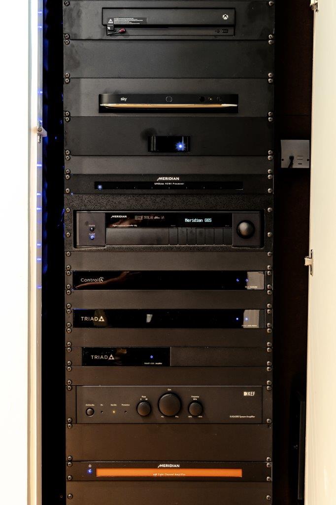 Having explained that the audio is one of the most important elements in creating an immersive home cinema experience, the client selected Meridian DSP speakers as they recognised their superlative sound quality.