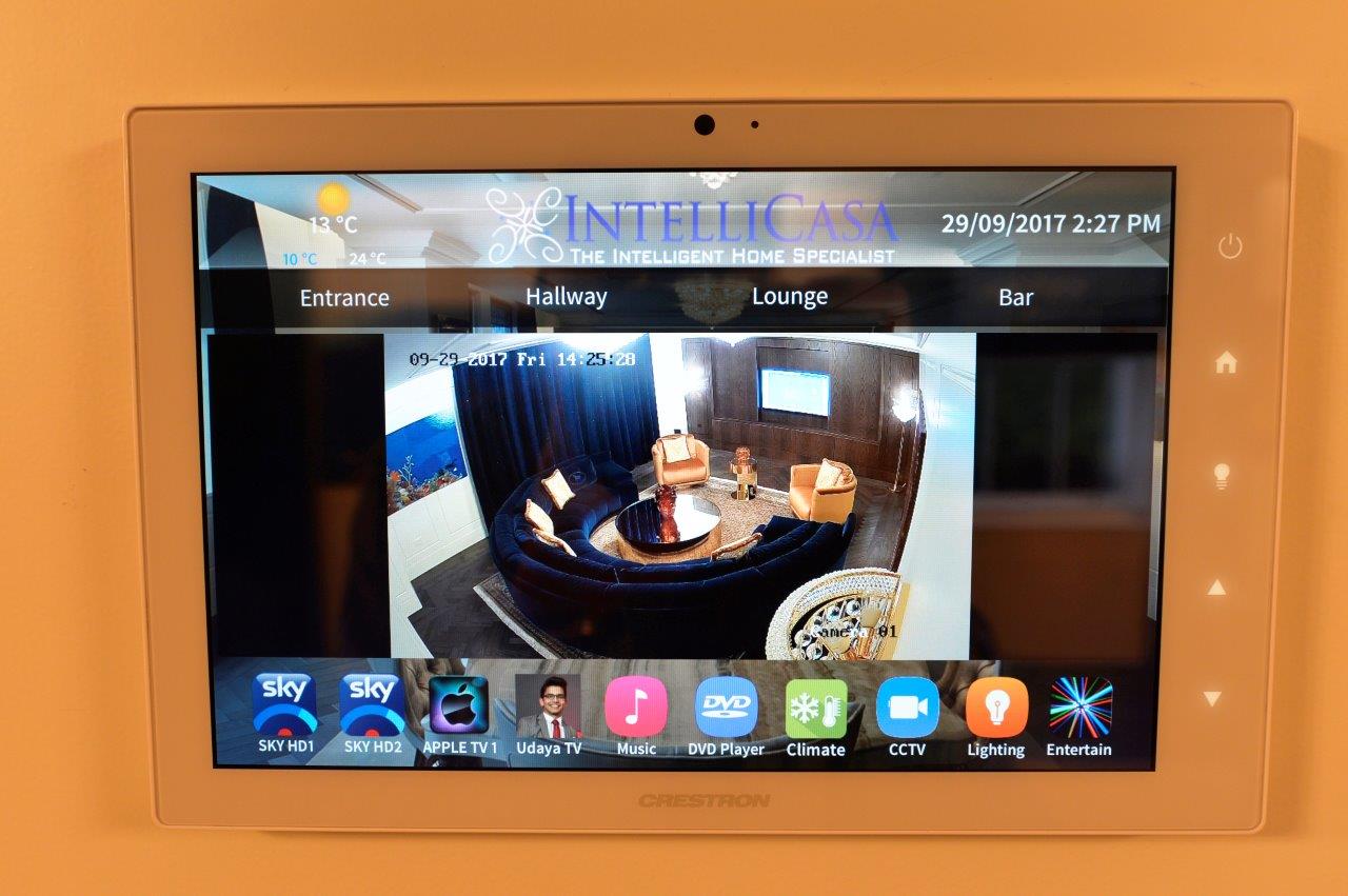 IntelliCasa’s integration solution was built upon a Crestron 3-Series processor which unifies the various components throughout the home. This allows for full control of the lighting, heating, curtains, blinds, CCTV and AV via Crestron HR150 hand-held remotes and 10in TSW-1060 touch screens.