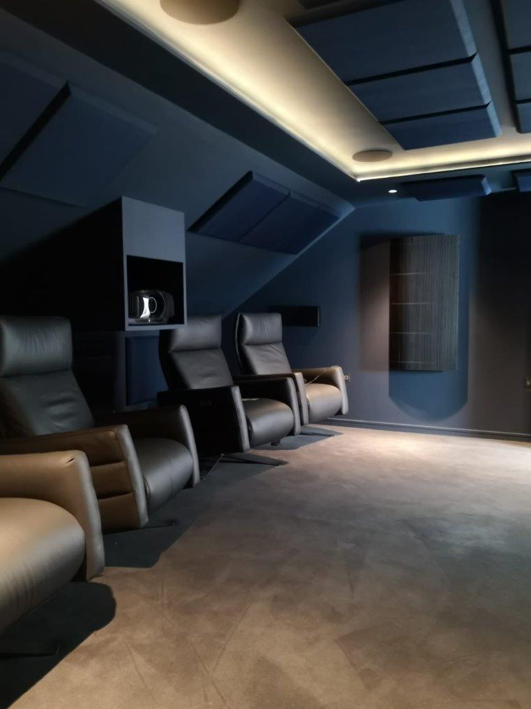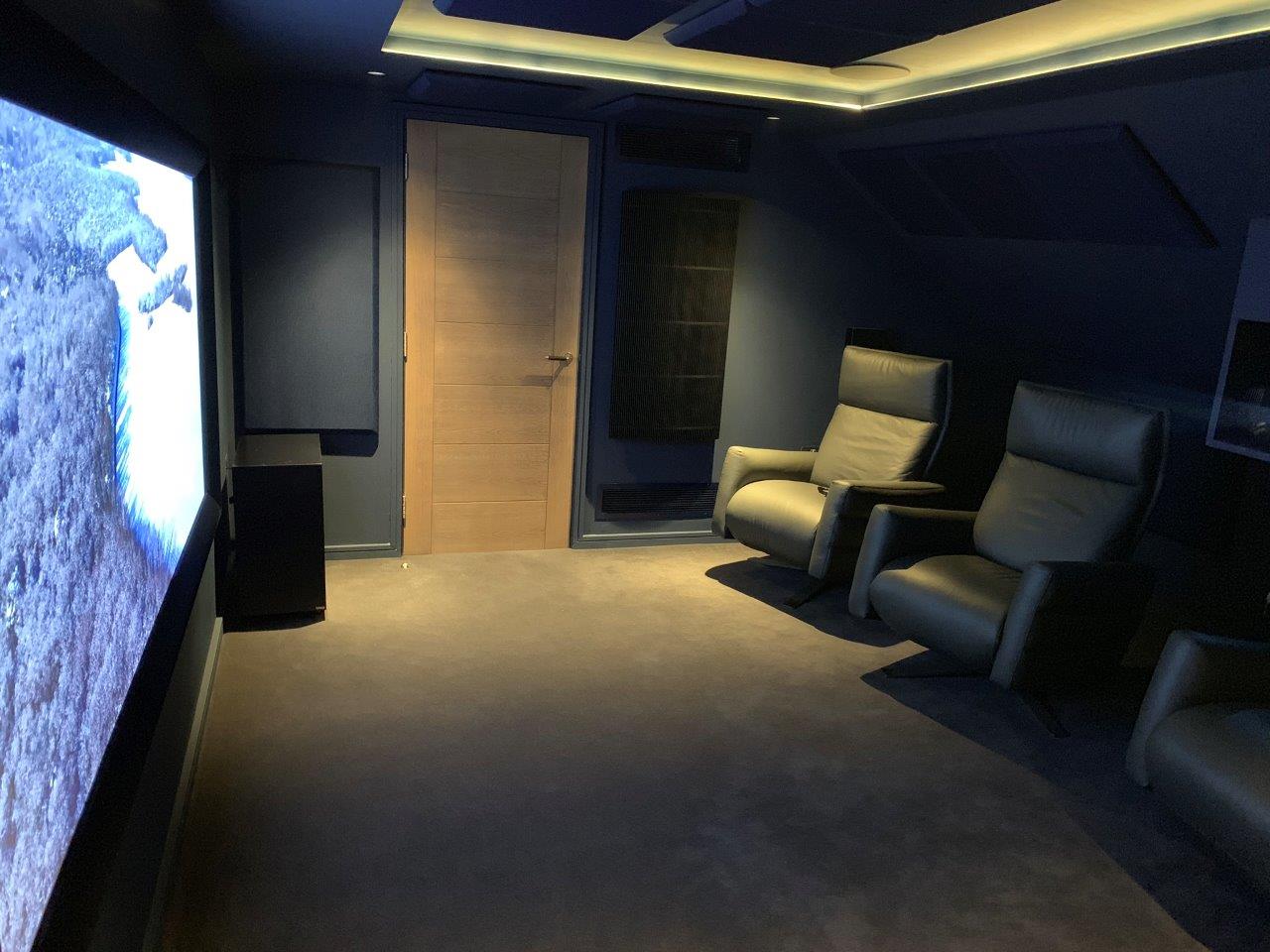 We are very proud with the end result of how the room looks, but most importantly how it functions as a very impressive home cinema experience. We have had amazing feedback from the clients and their visitors, with many hours spent in there for a movie or sporting event.