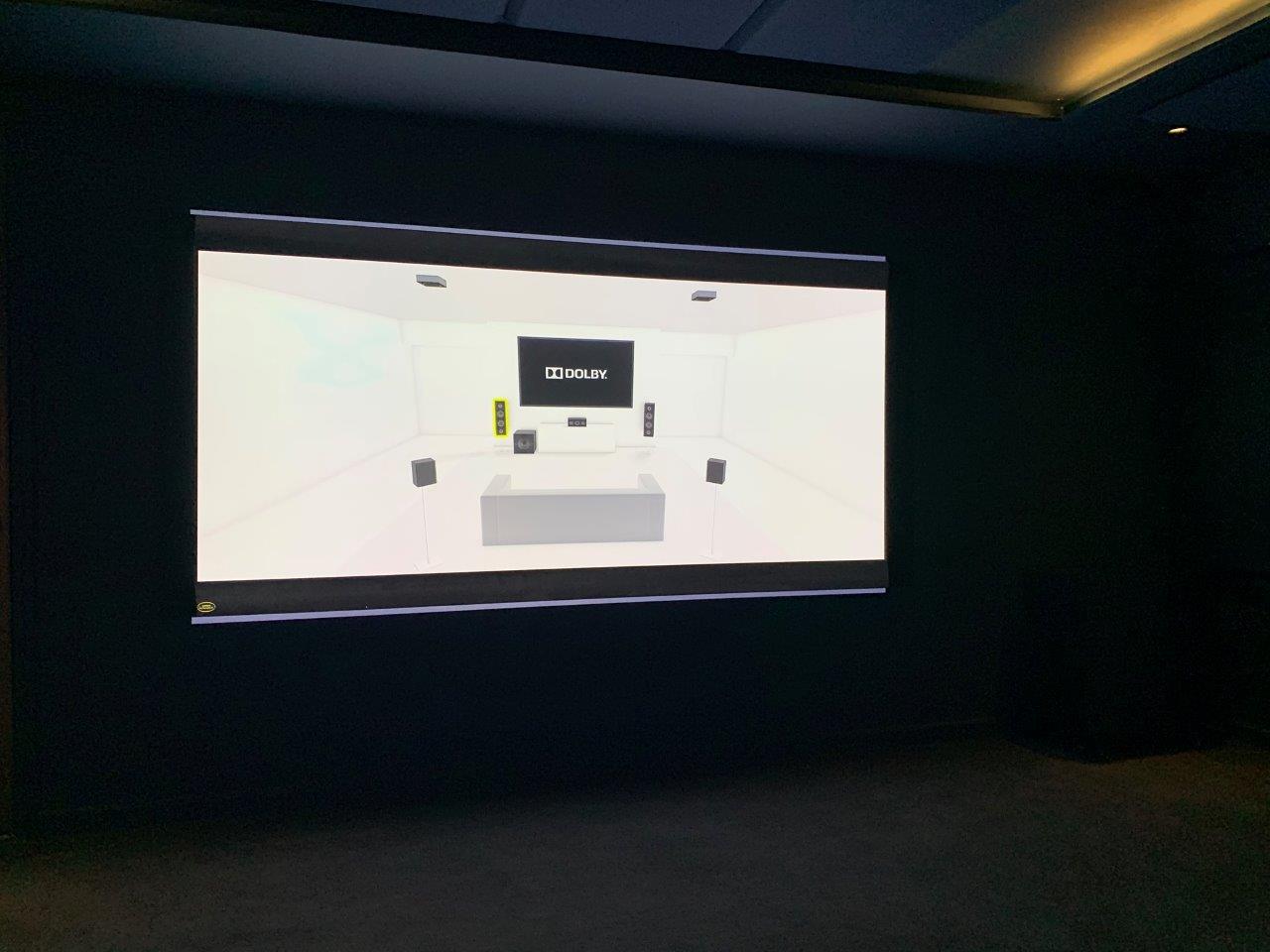 We’ve achieved reference levels at the centre sweet spot, unfortunately we couldn’t add in overhead Dolby Atmos channels as the room layout didn’t allow this. With the seating pushed as far back as possible, the rear channels were best placed on the side walls.
