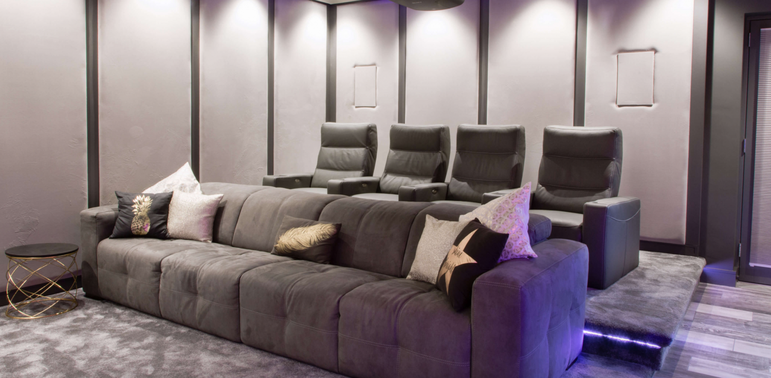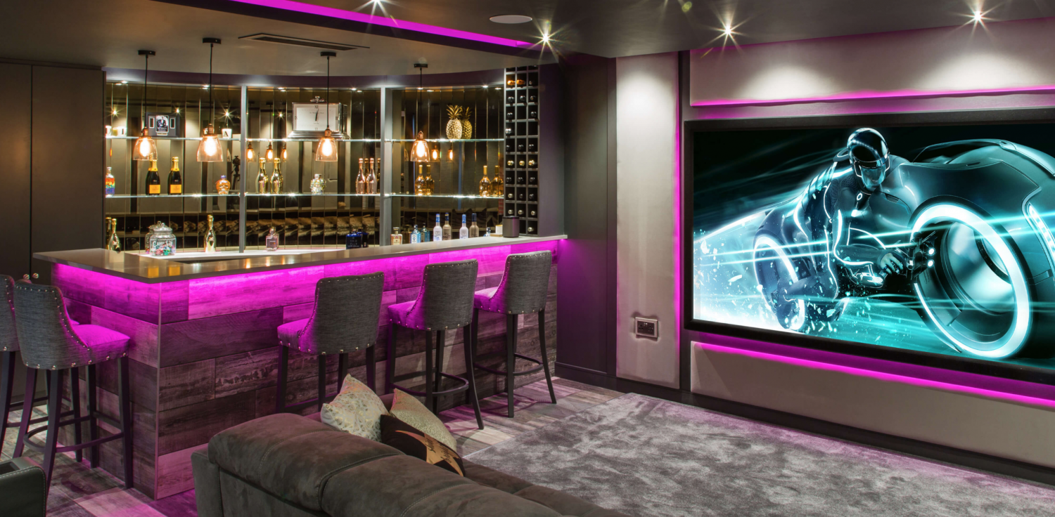 Finite Solutions recently installed a £35,000 home cinema into the basement of a home in Cheshire. The brief was to design a space that suited socialising as well as watching films and sports, with at least eight seats. The client was also very keen on the idea of having a bespoke bar.