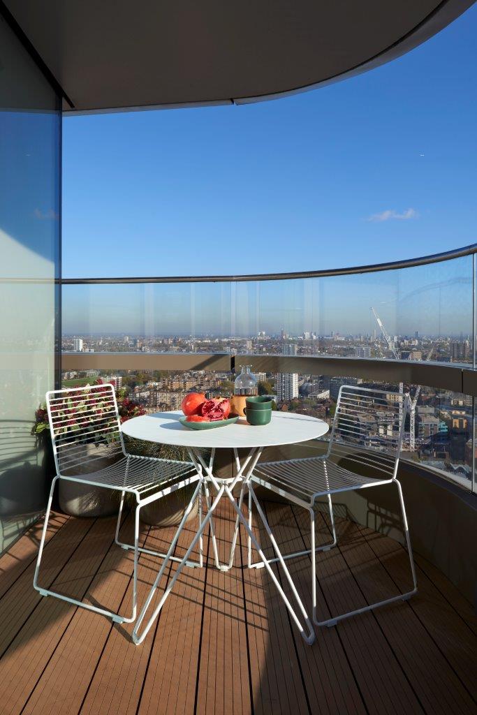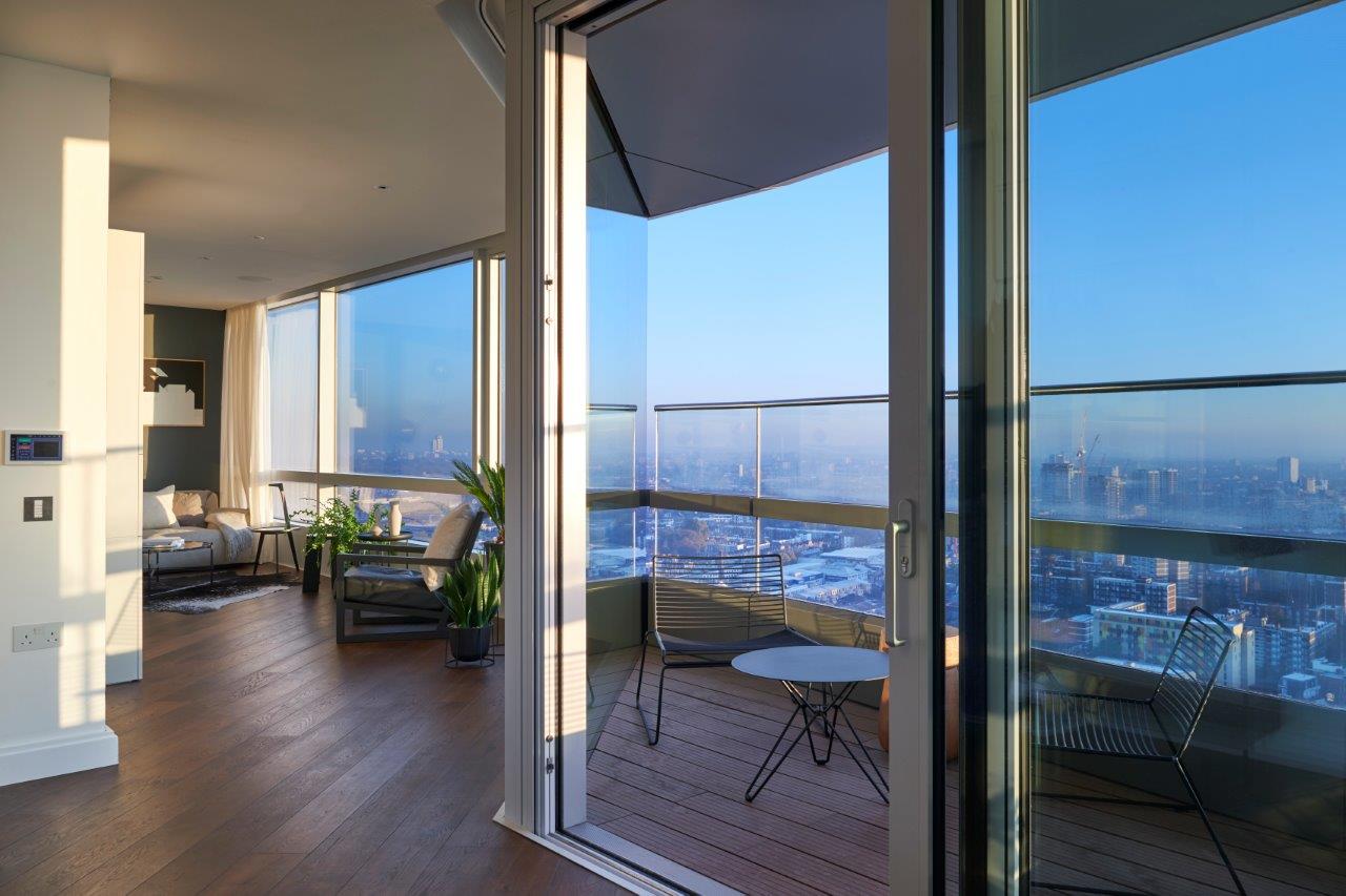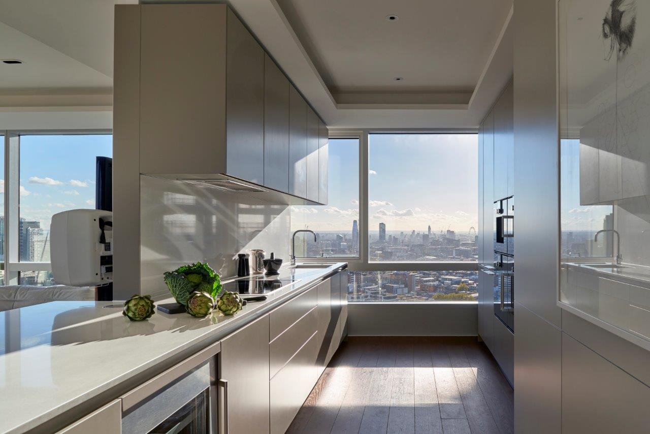 The apartment is owned by a couple of successful tech entrepreneurs and features a Nordic interior designed by Clerkenwell-based interior architect and design practice, Johnson Naylor. The city-facing open plan living space offers spectacular views of London, which can also be enjoyed from the flat’s balcony.