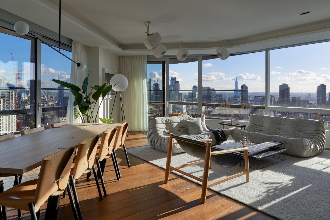 Canaletto (named after the Venetian landscape artist) was designed by Dutch architect Ben van Berkel of UNStudio and features a striking curved steel and glass façade, which makes a unique statement on London’s skyline. Each apartment has its own distinct style and feel and this apartment decided to add some automation and AV touches of their own.