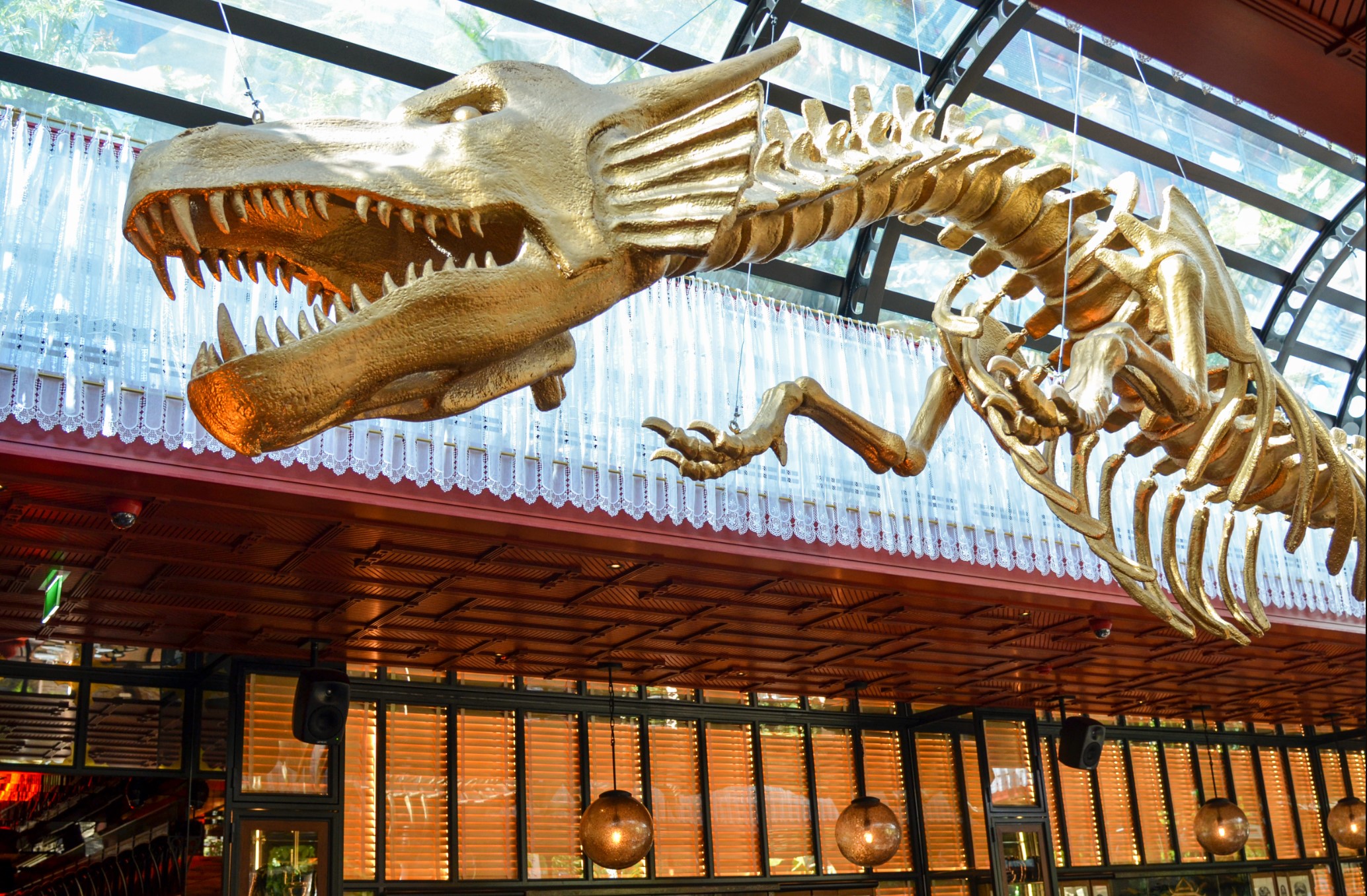 For the restaurant area, Garrett opted for a total of 14 4040s. The biggest issue here was the acoustics, as the outside wall is mostly glass and there is a huge glass atrium overhead that houses a rather magnificent dragon.