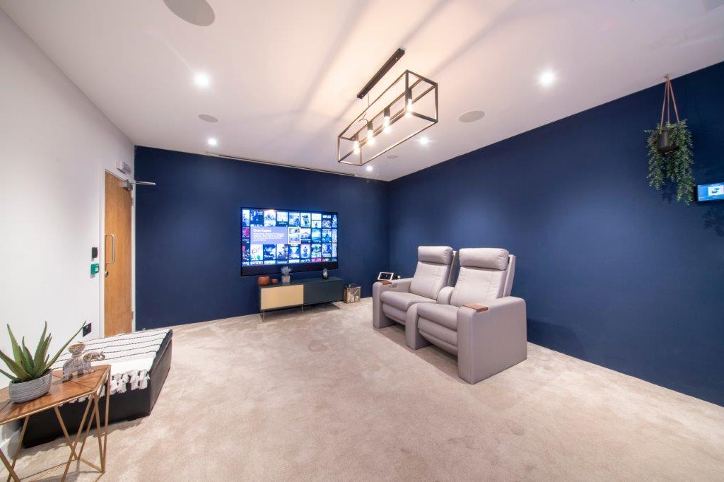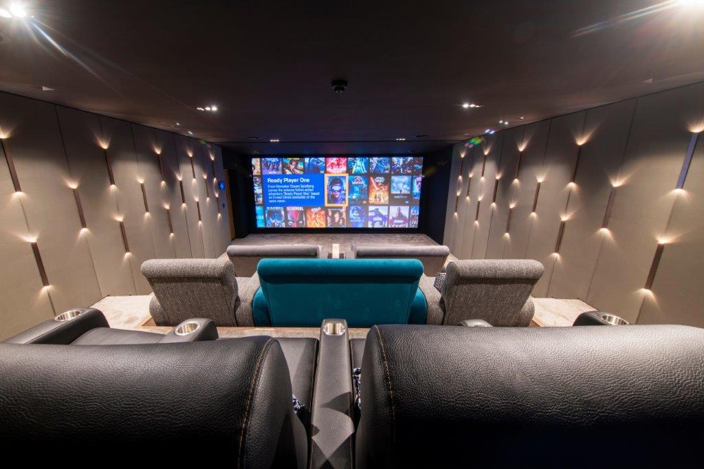 This room features a 7.4.2 Sonance speaker arrangement, partnering a JVC NX5 projector using an anamorphic lens and an Arcam AVR30. First impressions here are strong as the room is simply nice to be in, even before the systems come to life. This is due in no small part to the Infinity seating which is featured several times around the building. This commercial seating company has worked directly with the distributor to develop a range of seating which blends traditional cinema seating with more relaxed sofa styles to create a very comfortable and welcoming experience.