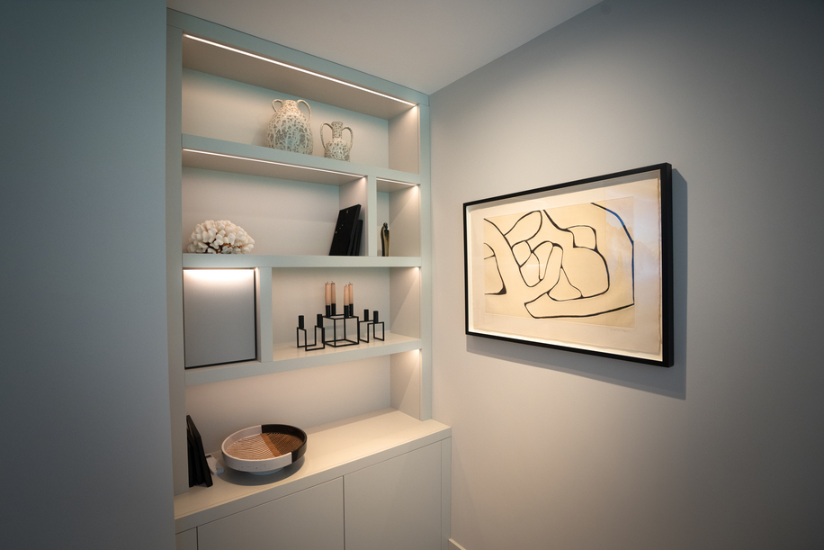Nicolai Landschultz, Managing Director at IndigoZest, explains, “The primary goal was to recreate the immersive movie experience observed in our showroom while seamlessly integrating the technology into the living room. Central to the client’s vision was the preference for a TV recessed into the joinery at the front of the room, as opposed to a projector and screen setup, with the room also functioning as the primary living space.”
