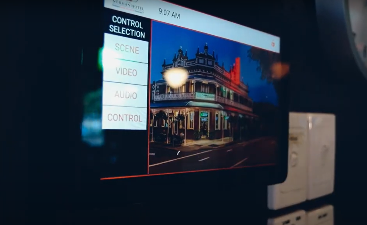 Previously, the audio-visual system inside the Norman Hotel was controlled via an app on a single iPad, which was regularly moved around as different staff members used it to change channels, adjust audio and rectify any problems that occurred. This presented significant challenges if they or the iPad happened to be elsewhere in the venue.
