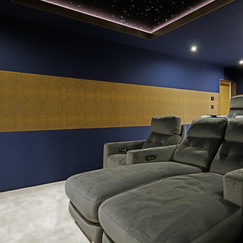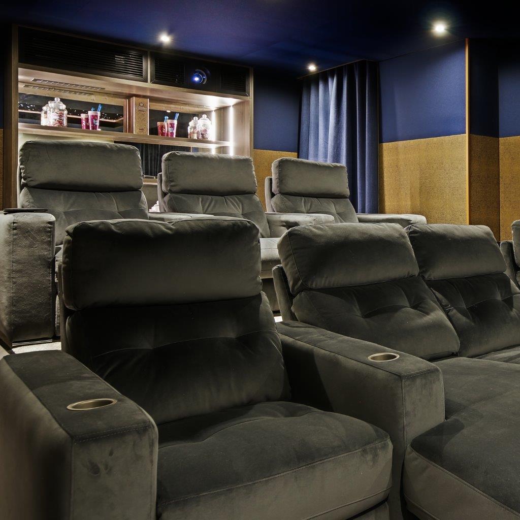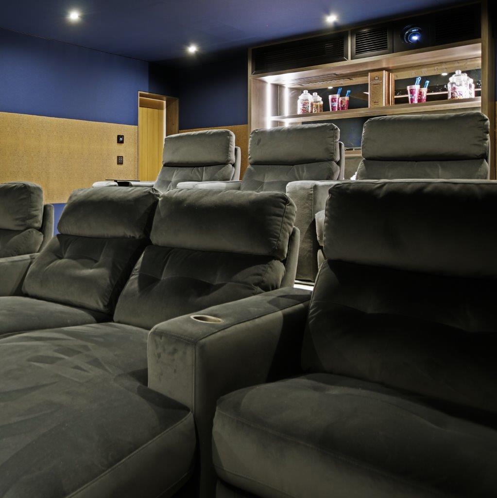 Talking of seating, the cinema benefits from two rows of FrontRow Serenity chairs, the middle front pair are in the lounger option for extra comfort.