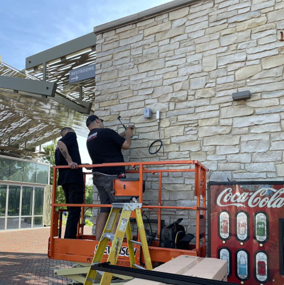 • Two Peerless-AV 75″ Xtreme High Bright Outdoor Displays (XHB754) + Outdoor Flat Wall Mounts (ESF675) with corrosion resistant coating and stainless-steel hardware
