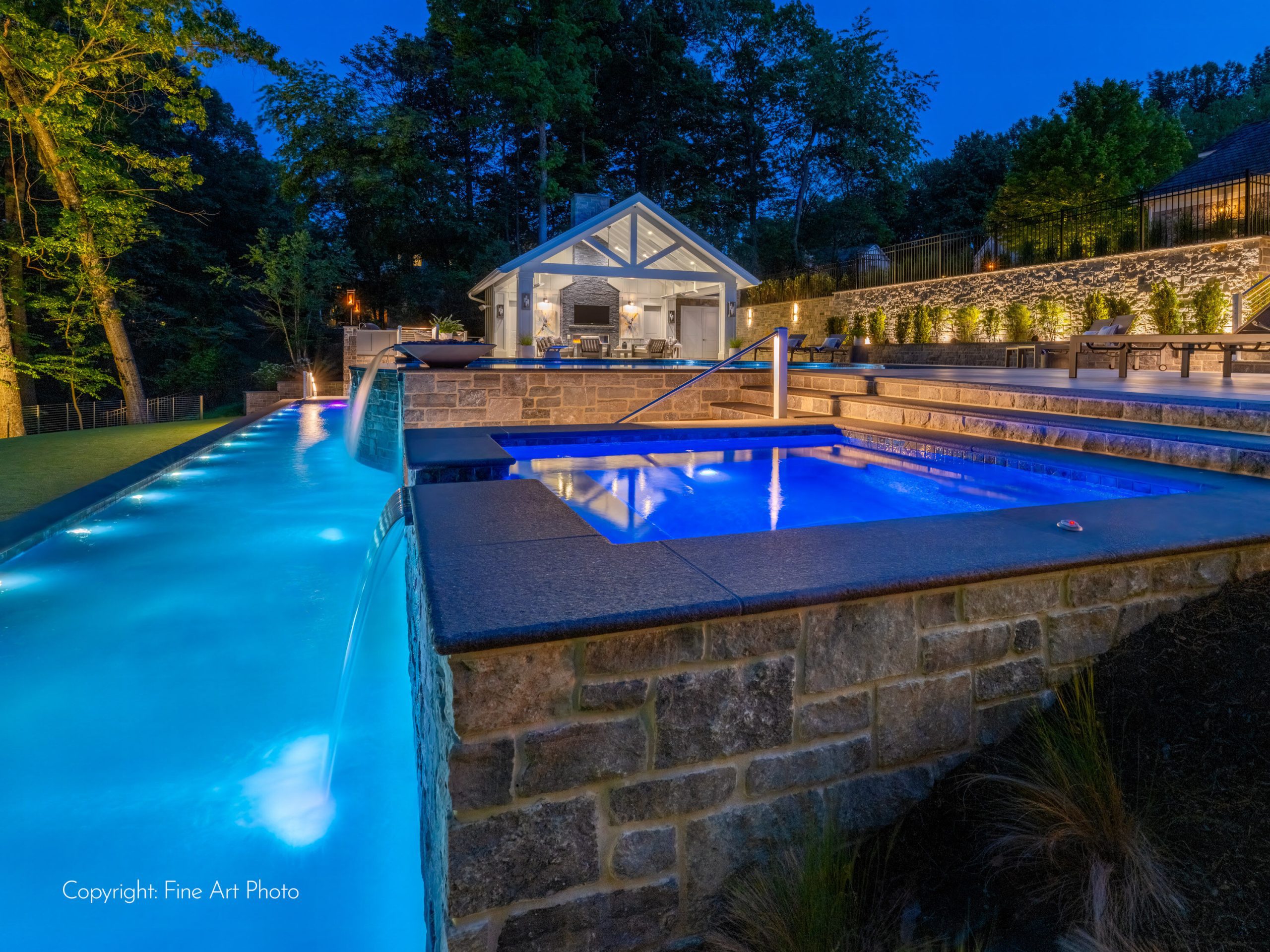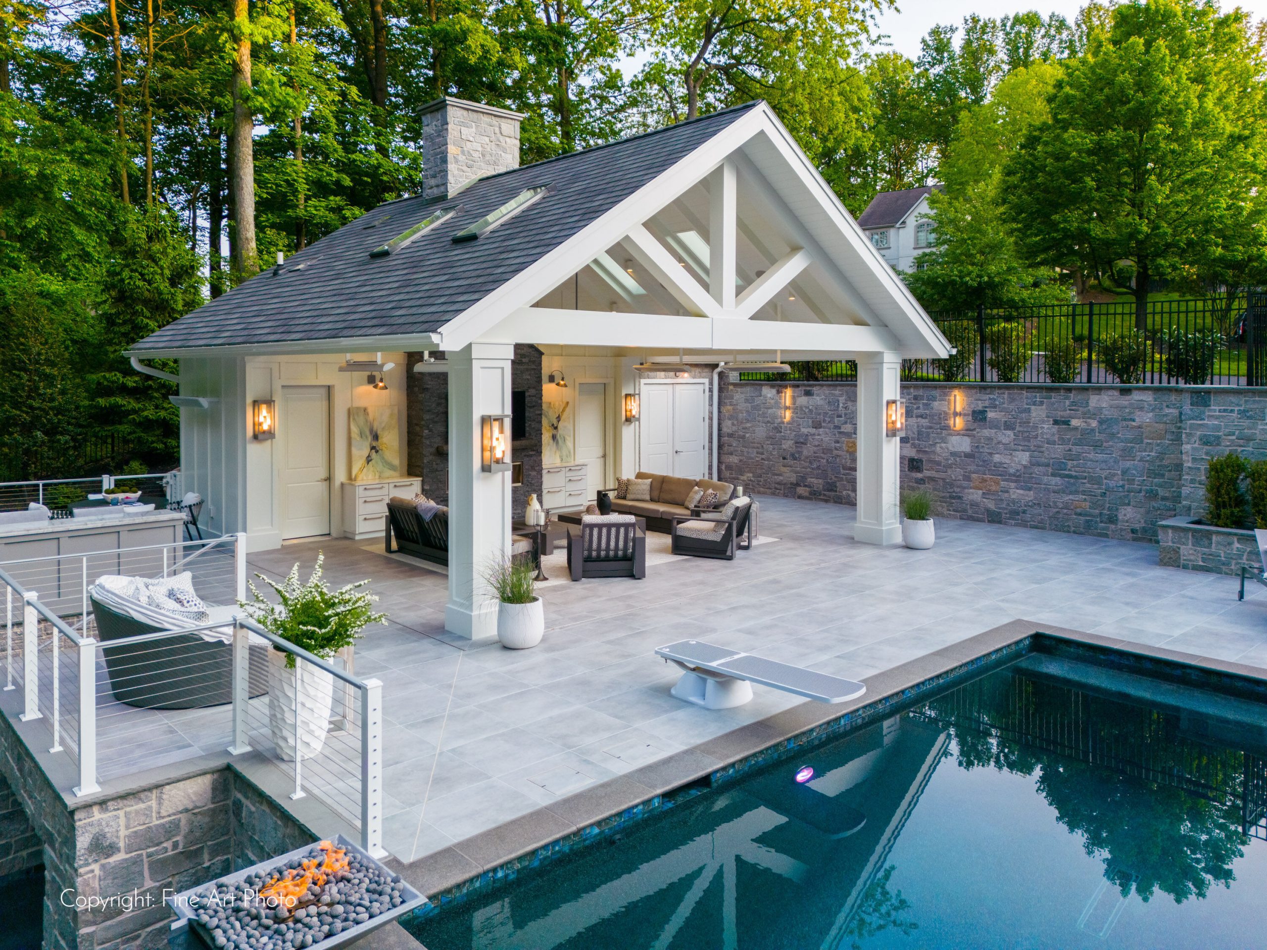 Make no mistake, however. This project was huge, involving major excavation of the property; construction of an elaborate swimming pool, pool house and full-scale outdoor kitchen; professional landscaping, and laborious trenching of essential electrical and low-voltage cabling.