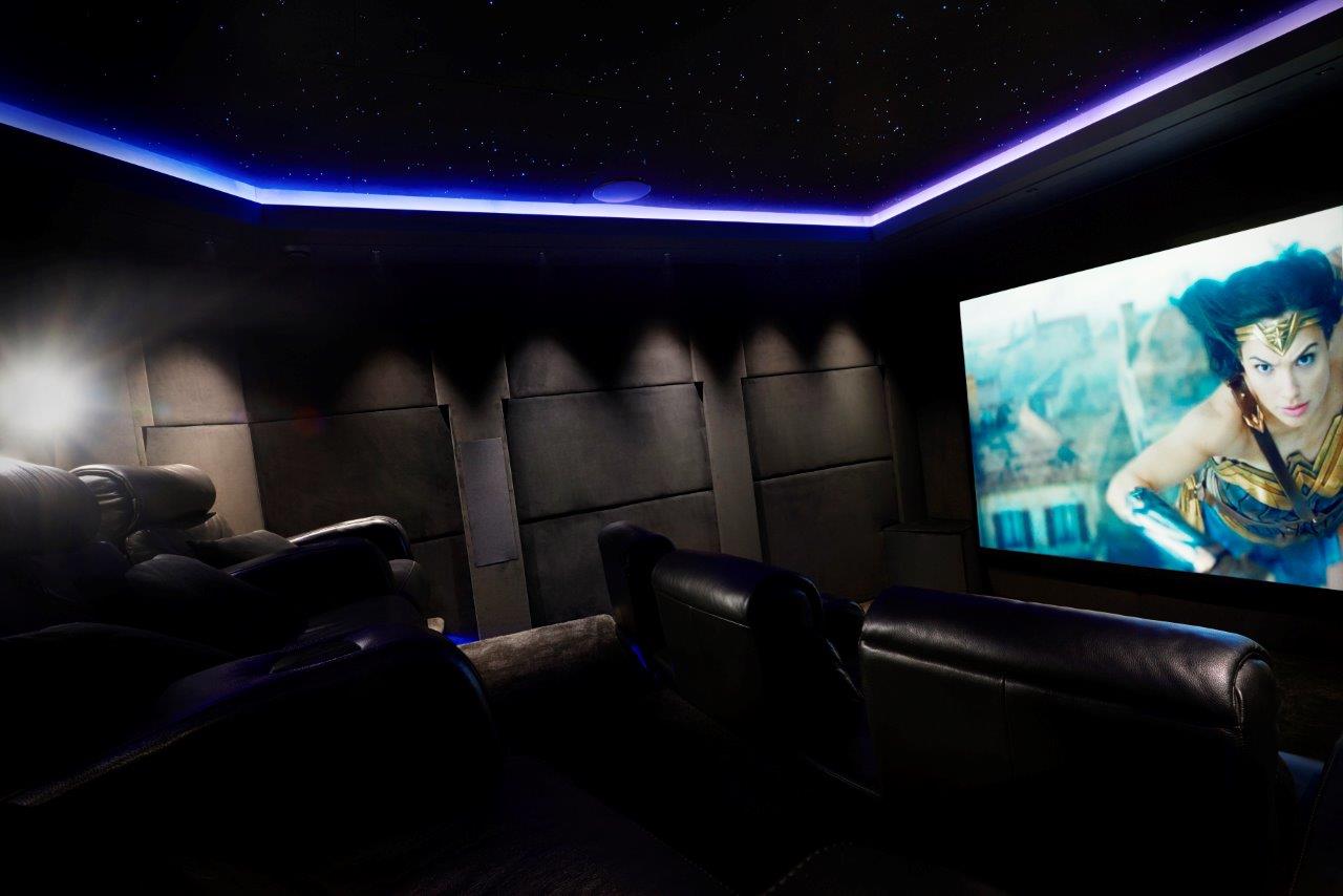 Nic Black, Pyramid AV’s MD, explains, “One thing that was clear from the outset was Bruce’s steadfast intent on having a fully black room and Hilary was keen to introduce a style that was art deco in essence, along-with a star ceiling effect.