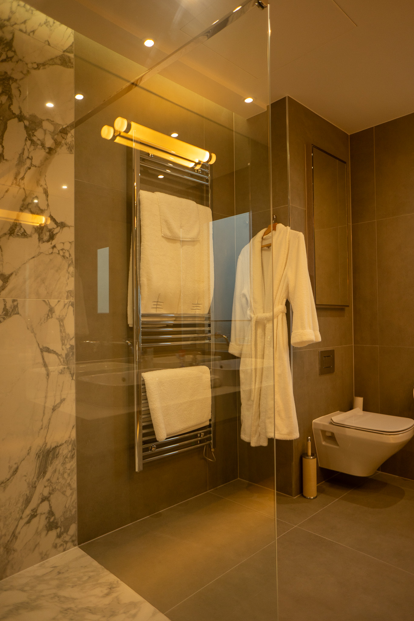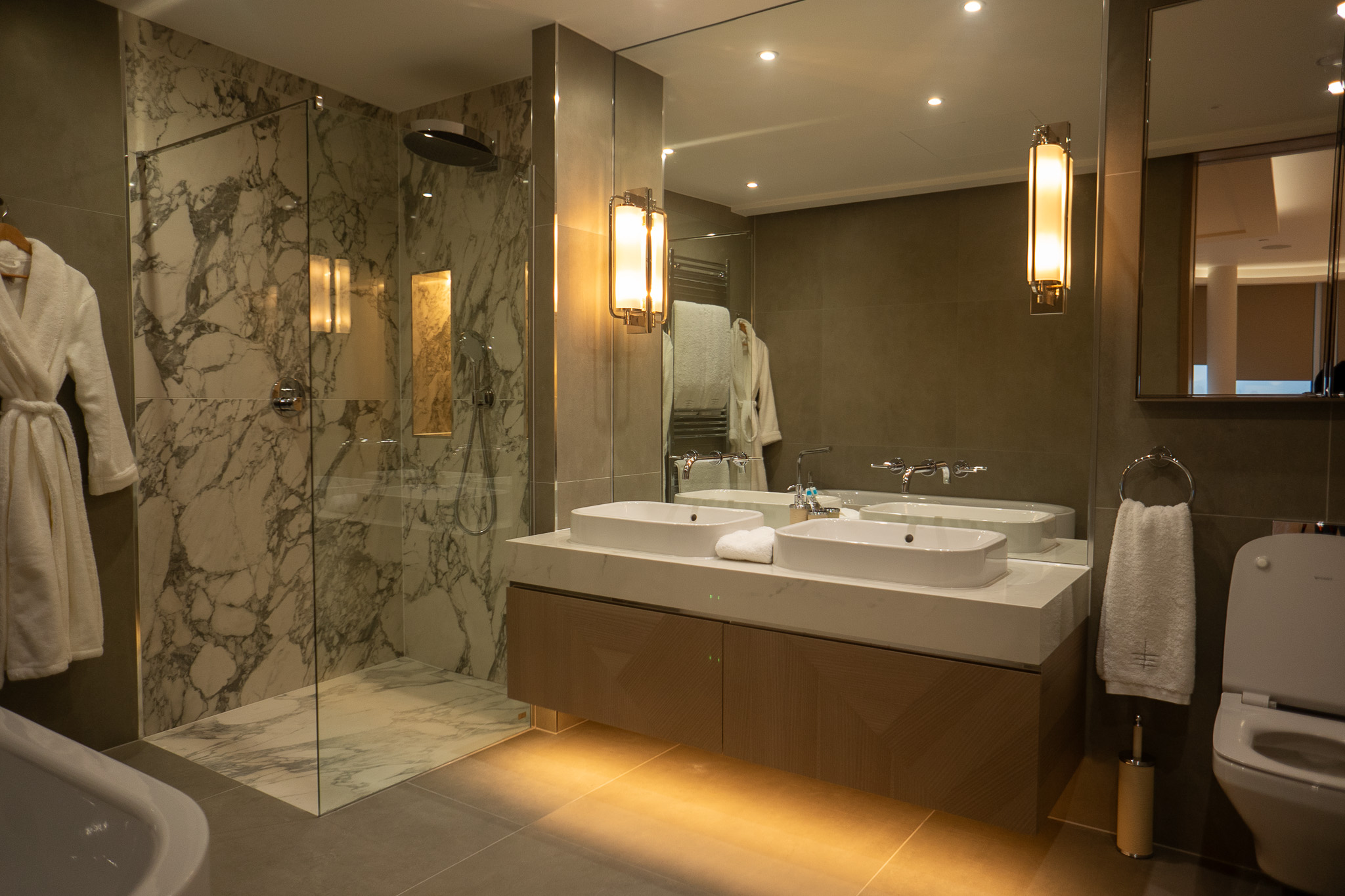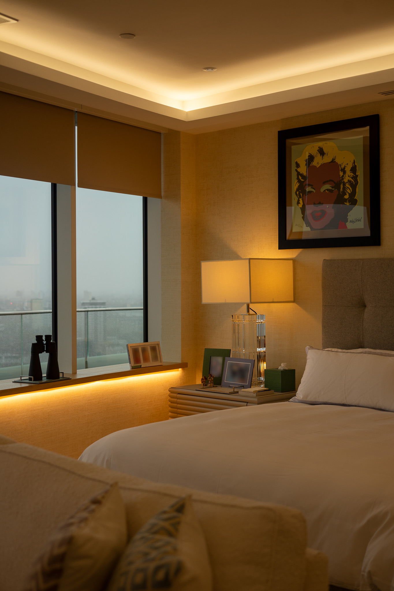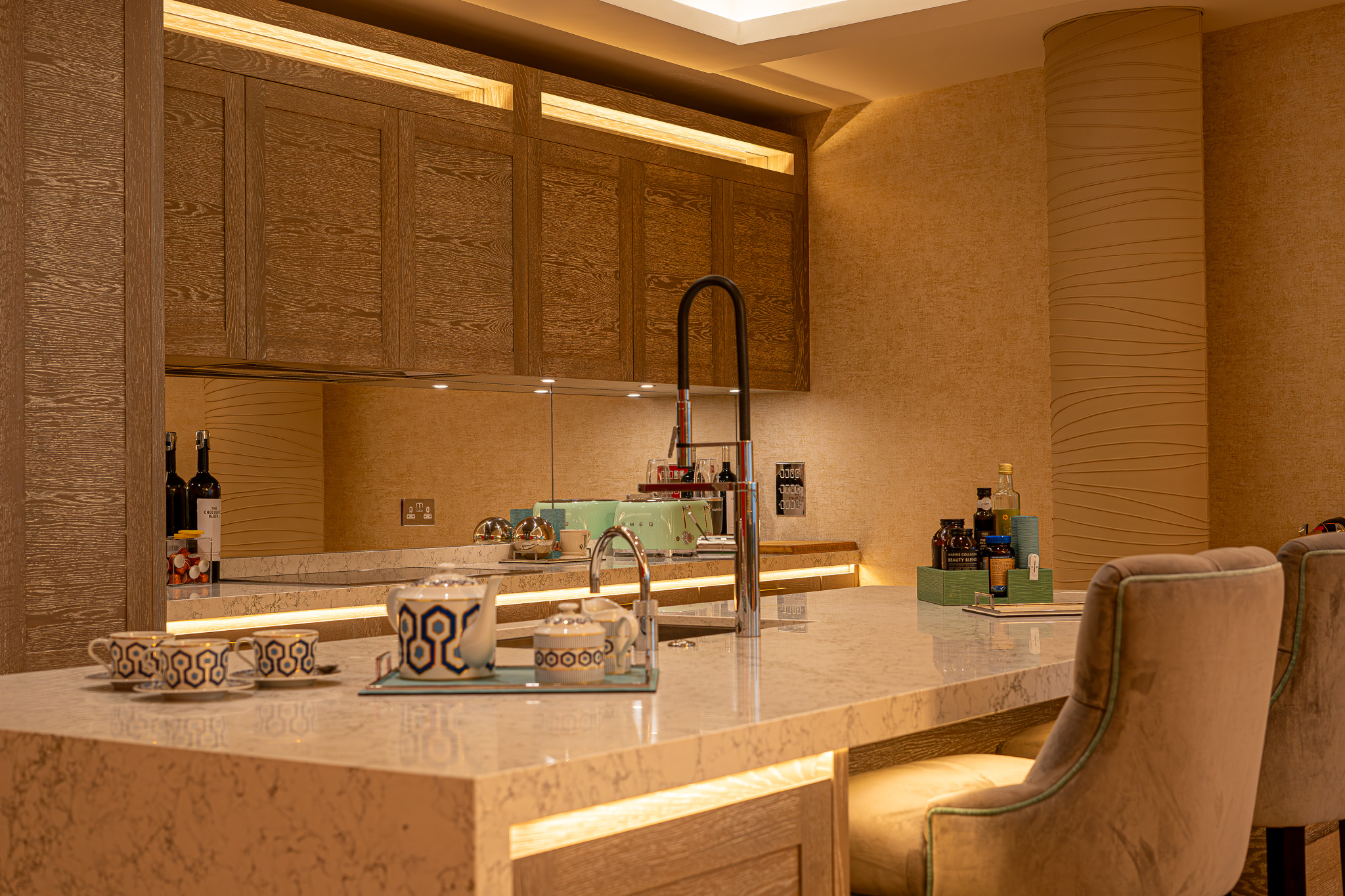 Natural materials, including wood and leather provide a comfortable, inviting home that is further enhanced by the lighting design. With low level, indirect lighting crafted into the skirting boards and under the windowsills around the apartment, greater flexibility is provided for lighting scenes creating a warm ambience across all rooms.