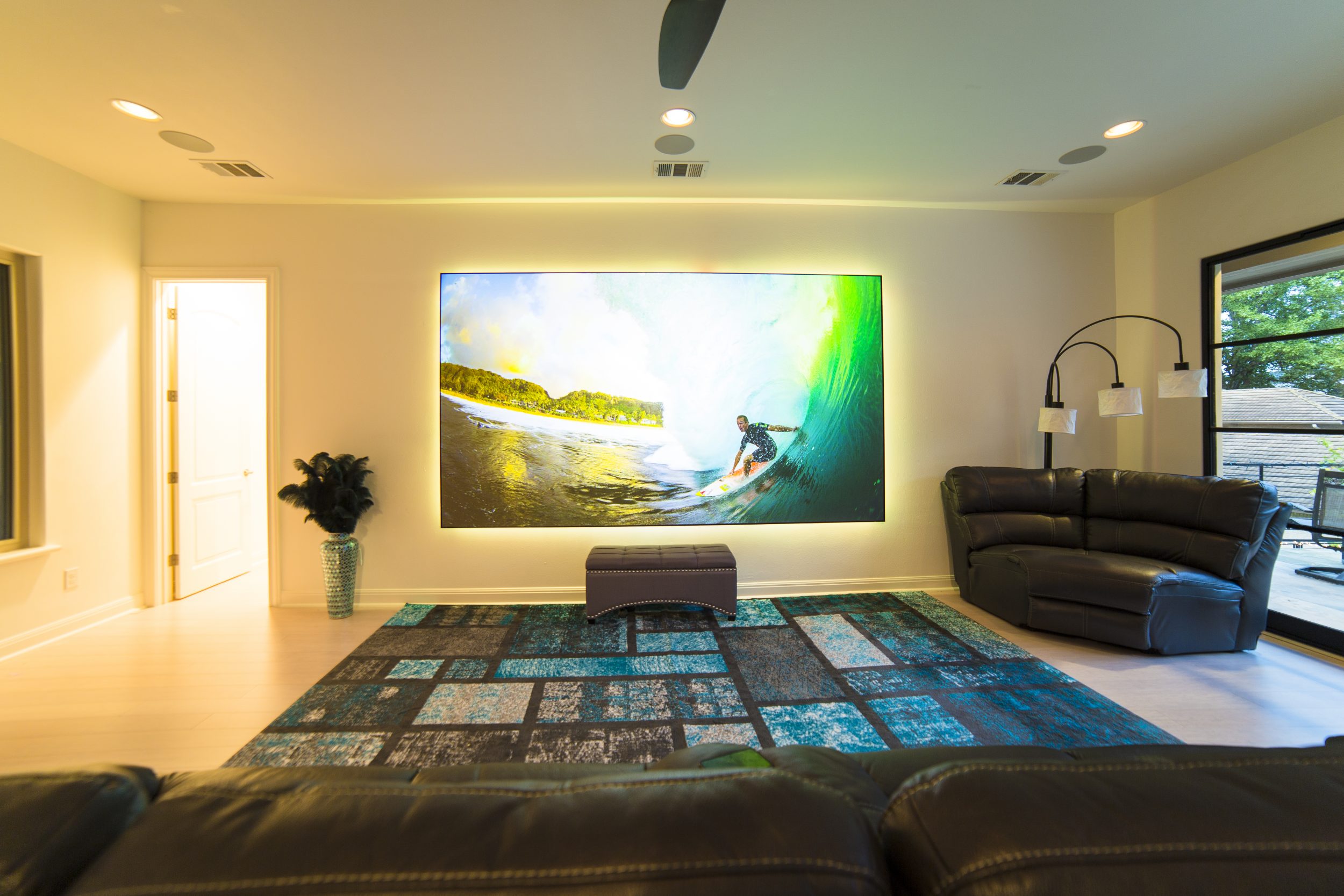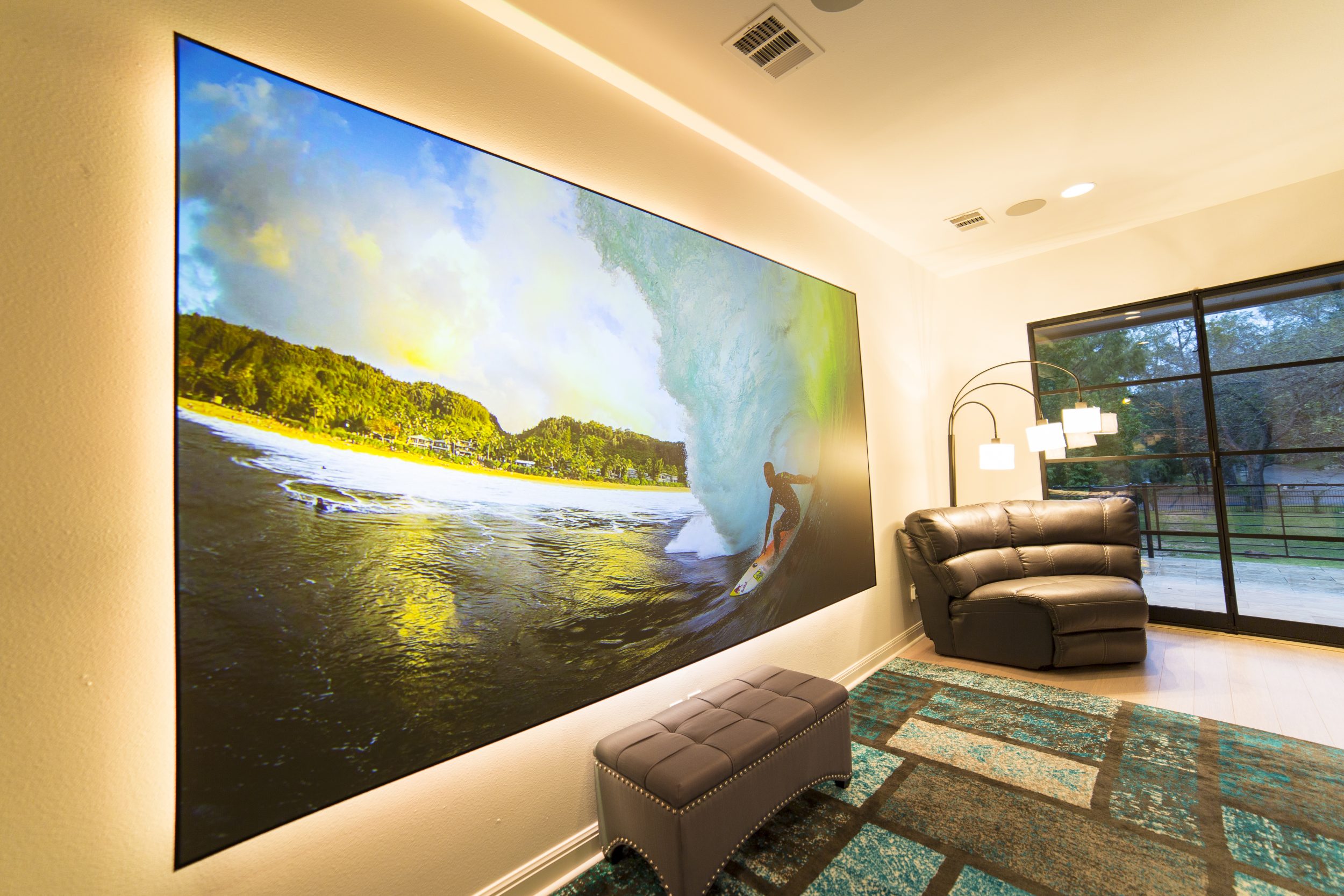 This was the case for Screen Innovations’ owner, Ryan Gustafson, who recently upgraded his own home theatre in Austin by installing a 150in Zero Edge Slate .8 screen.