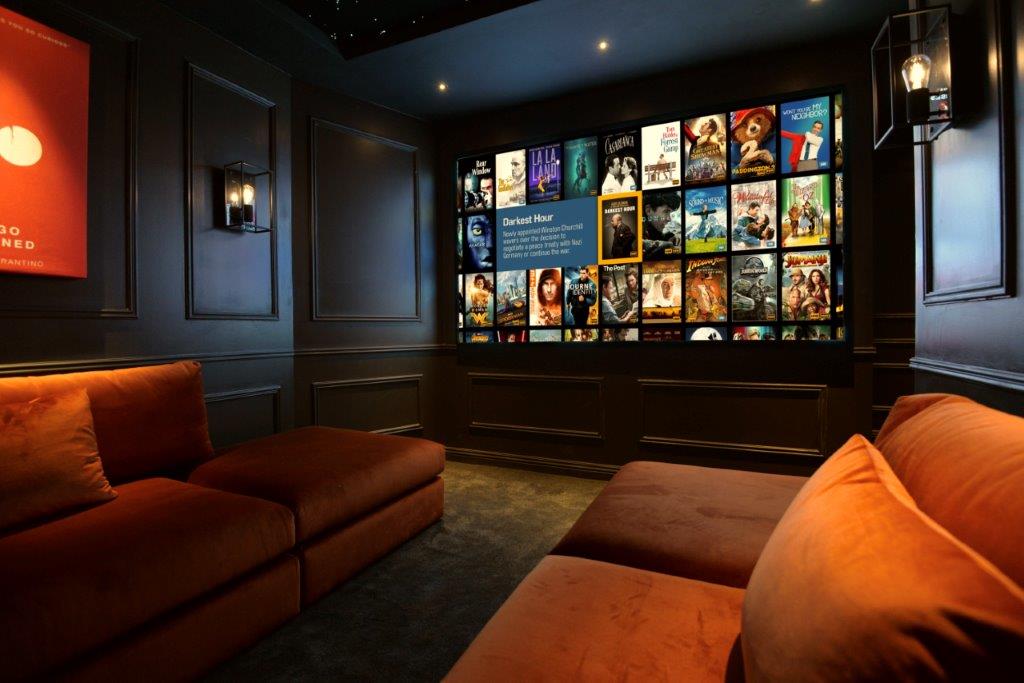 Toms says, “It is not usual for us to be given the opportunity to fully design a cinema room from the ground up, so we were excited to flex some design muscles. The fact the client was so happy with the results was a bonus, and we believe the design details such as the French panelling, Buster+Punch lighting, and the bespoke movie posters with acoustic treatment, really added to the enjoyment of the room. We added some surprise features, such as having a link from the remote’s home screen to a weather app so he can check the snow forecast for the slopes! He also loved that the lights dim as a film started and they slowly brighten when pausing/ending a film. It’s these reactions that give us the greatest pleasure and we’d love to bottle that in the form of a Smart Building Award!”