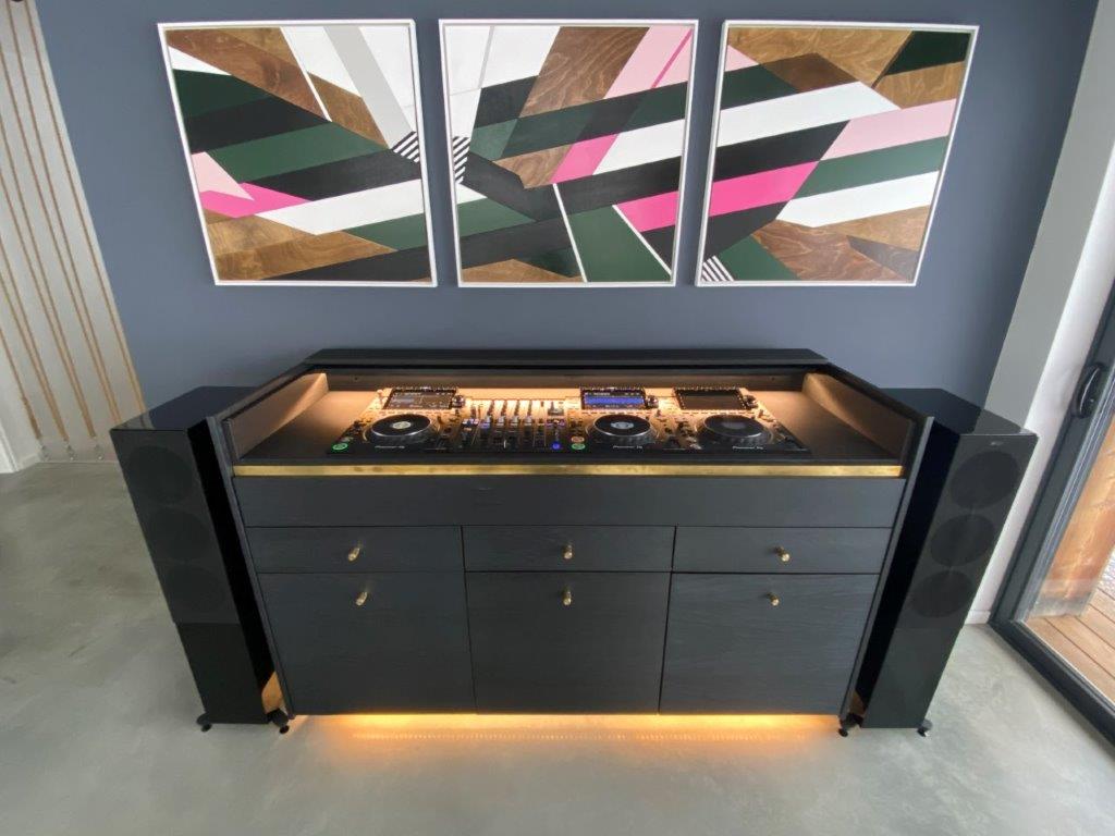 In addition to a bespoke DJ booth and some outdoor audio solutions, the main directive was to convert a windowless, awkwardly shaped room in the basement into a reference level cinema. This was a ground up design and build, including the sourcing of the lighting, furniture, carpets, artwork and naturally AV equipment.”