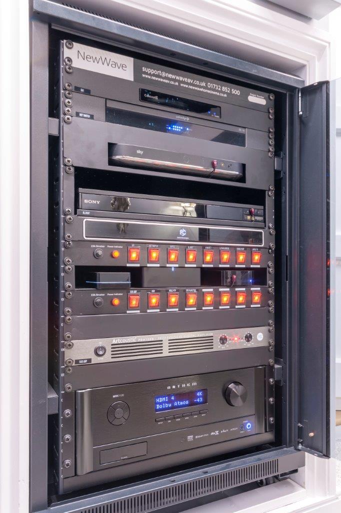 As the client was a real film enthusiast a Kaleidescape 4K Movie Server was specified along with a 2.40:1 Screen Research acoustically transparent screen. A Sony VPL570ES projector was specified due to its high performance, brightness and lens memory. The client also wanted to be able to simply control every element of the room so Control4 was specified for this aspect. This allowed control of all AV sources as well as lighting and the Lutron window treatment.