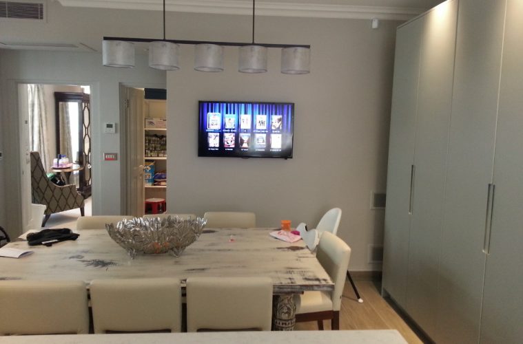 “Switching of all input sources is done through an Atlona AT-PRO3HD 6×6 HDBaseT matrix switcher located in the main equipment rack, which is linked to each of the six TV displays located around the property. All Samsung TV displays are wall-mounted using Sanus full motion and fixed tilt wall brackets ranging from 32in displays up to 75in for the main living room/cinema room,” he furthers. Each TV display is equipped with a local Apple TV unit fixed to the rear of the TV display for airplay applications. A local Chromecast unit is fixed to the rear of the TV display for Android use, while the Atlona matrix HDBaseT receiver, digital TV signal feed and network connection are used for the smart TV side. Moving on to the kitchen and dining room, these feature wall-mounted 40in Samsung Smart 9000 series TVs and two B&W ceiling speakers for music playback, controlled via an iPad or wall mounted Apple iTouch locked to the Sonos App in a Black Glass Inno in-wall mount. Meanwhile the living room/cinema room area boasts a 75in Samsung 9000 TV display, a 5.1 Sonos surround system using two B&W ceiling speakers for the rear effects channel and Sonos amp, while a Sonos Sub and sound bar act as the left, centre and right speakers and bass. The system is controlled locally via an RTI T2-Cs+ remote control or via an Apple iPad. Not forgetting the nursery on first floor, which is equipped with a pair of B&W ceiling speakers controlled by an iPad, whilst the nanny’s bedroom is equipped with a 32in Samsung Smart wall-mounted TV. The guest bedroom has also been completely kitted out, featuring a 40in Samsung Smart TV wall-mounted with local Apple TV Chromecast units mounted on the rear along with an Atlona receiver. A pair of B&W ceiling mounted speakers controlled via an RTI T2 Cs+ remote are also included in the room, as is a Local Apple TV unit mounted on the rear of the TV display, with a Chromecast unit also mounted on the rear of the TV. The master bedroom features a 55in Samsung Smart 9000 Series TV mounted onto a Sanus cantilever wall bracket and the TV has a local Apple TV with Chromecast units fitted to the rear along with an Atlona receiver. B&W wall speakers also feature in this space, which provide sound for the Sonos system, again controlled via an RTI T2-Cs+ remote control or via an Apple iPad. The movie server Dune players provide content to the living room/cinema room, the kitchen/dining room, as well as the master bedroom and guest bedroom TV displays. Security was also taken into account; the home’s CCTV system consists of two external and two internal Samsung cameras connected to a DVR recorder, enabling the client to log in externally and view all cameras via the web or smart phone. Internal cameras are located in the main lobby covering the entrance area and living room, while external units cover the front and side elevation of the property. “The hardest thing is to keep a client totally happy and this is really a testament to my staff, some of whom have been with us for over 30 years – who always go beyond to ensure our clients are happy,” says Ashwin. Read on for the main rack kit list Atlona 6×6 HDBaseT Matrix