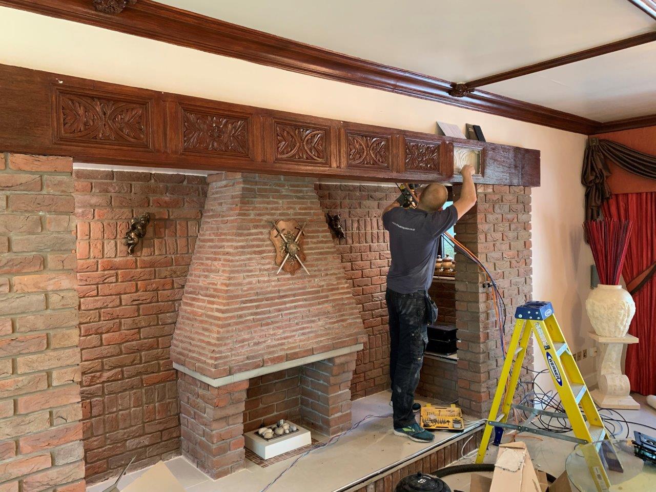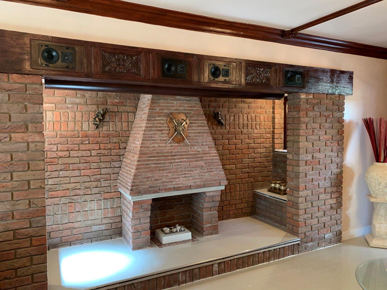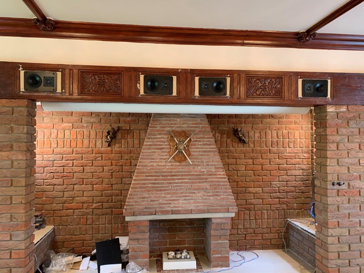 Atif says, “The most challenging aspect was trying to install speakers into the existing wooden beam above the fireplace. But we did it!”