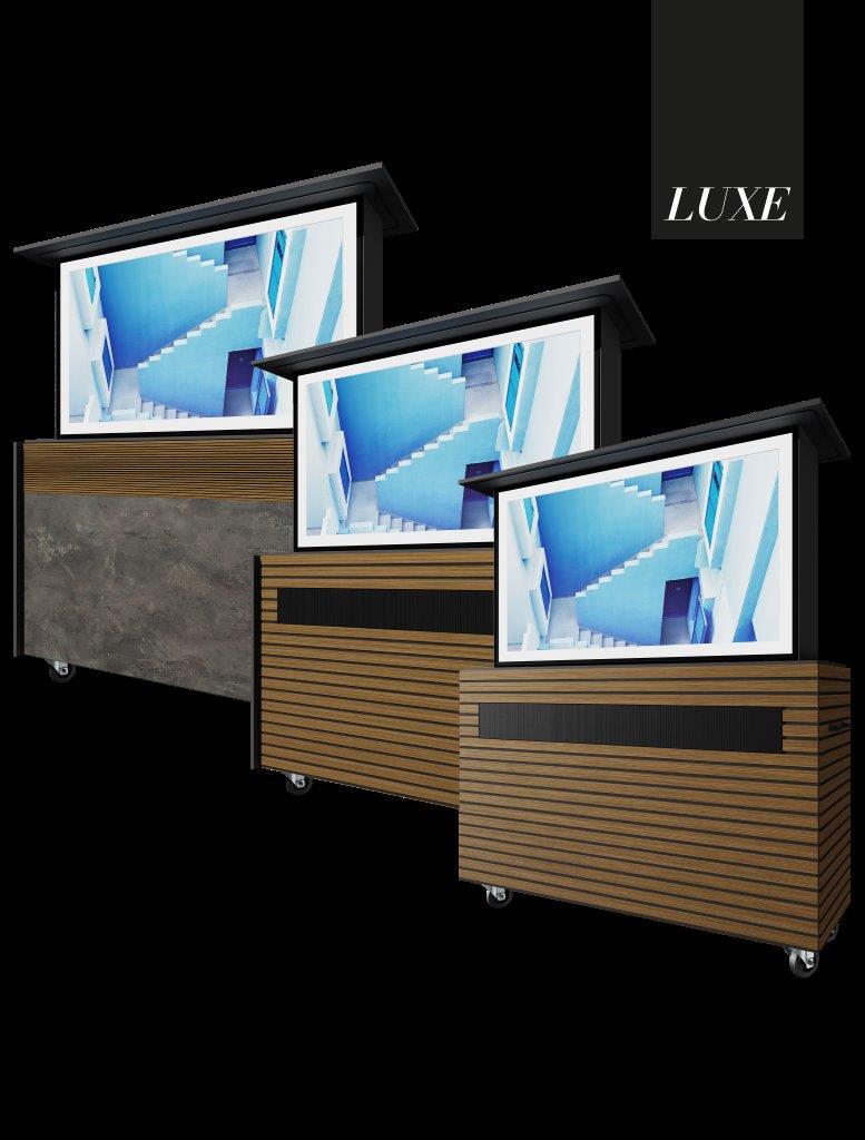 At the press of a button, the Cineair and Cineair Luxe automatically reveals the outdoor display from within a handcrafted range of cabinets. The all-in-one design also integrates a soundbar if desired into the front of each cabinet so users can listen to music when the display is hidden.