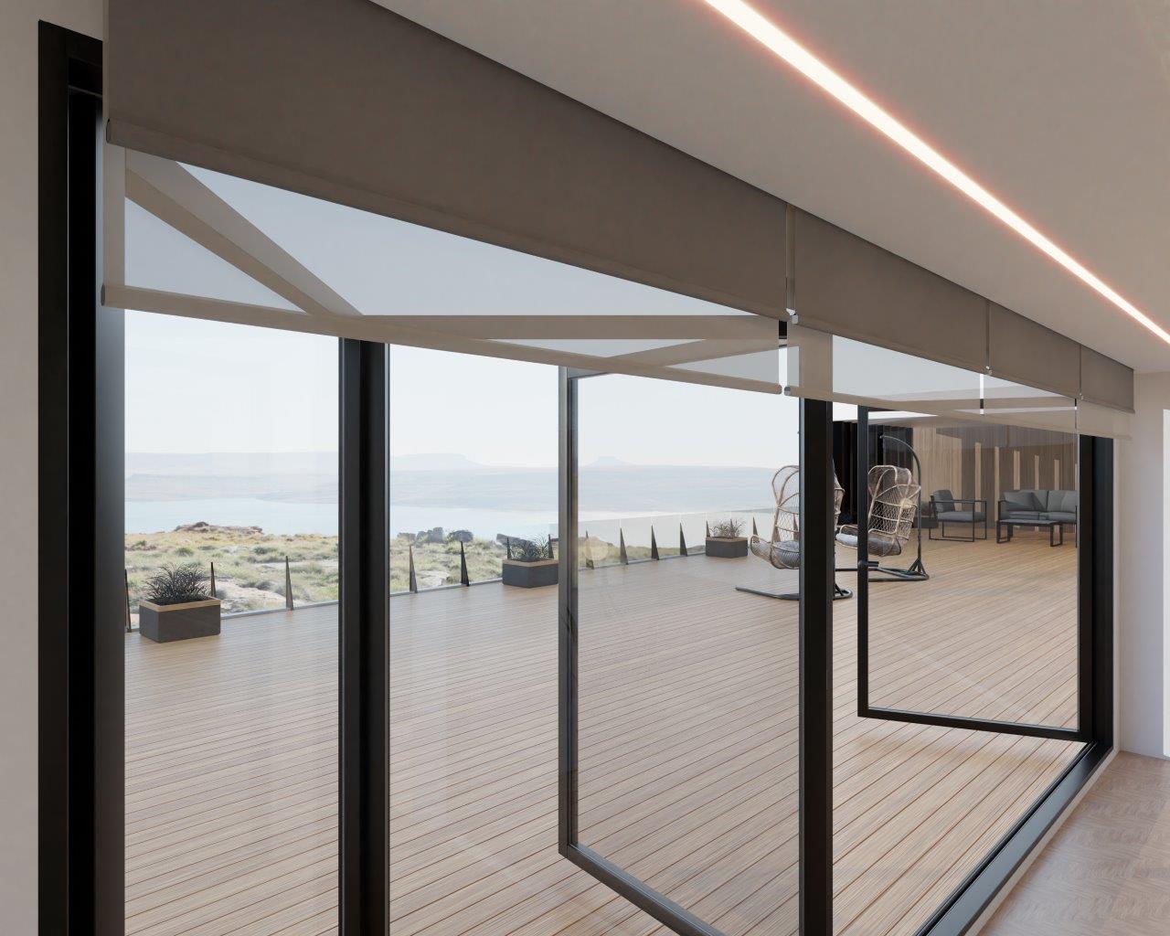 The UniChannel (UCH) system combines a wooden carcass with extruded aluminium side trim profile instead of the traditional all-aluminium construction to create a more flexible, installation friendly and cost-effective pocket shading system.