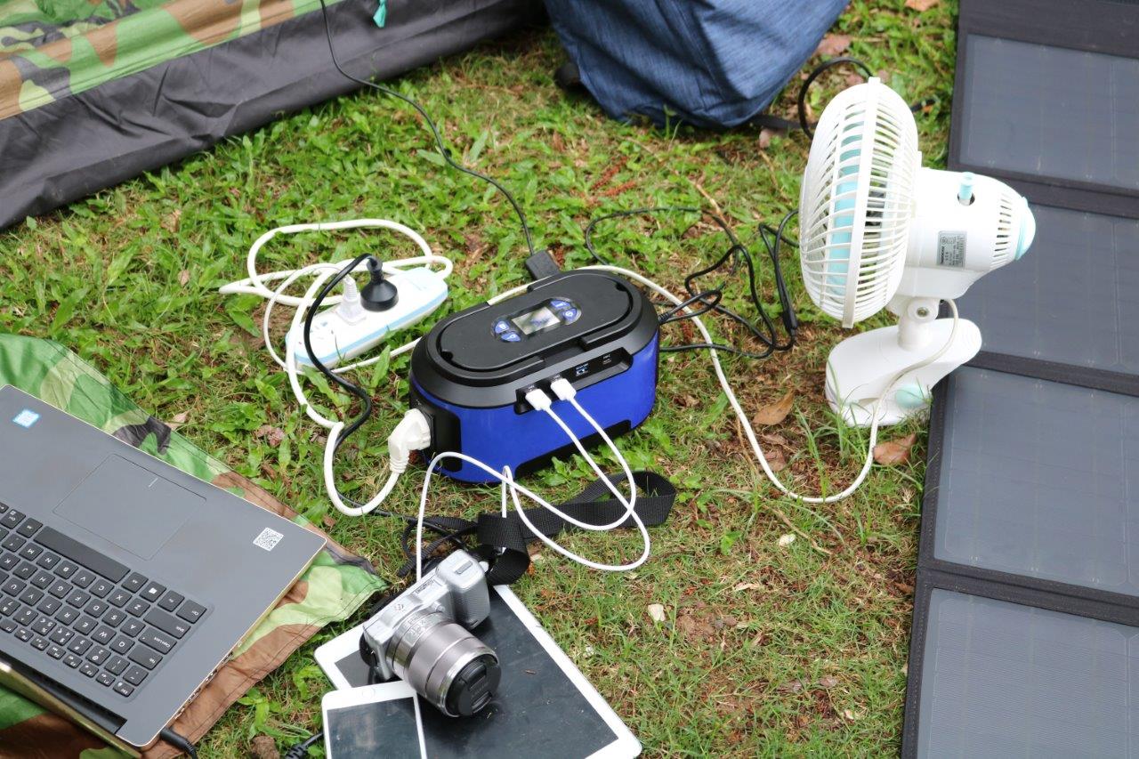 The unit also has an LCD screen showing power status and connected loads. The in-built solar controller allows a solar panel to be directly connected to the power bank to enable on-the-go charging.