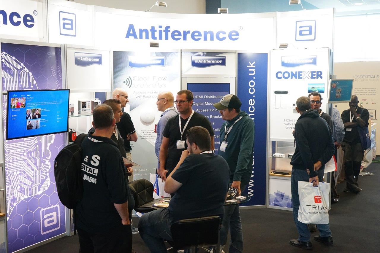 Antiference promoted a new versatile line of wireless access points. With three internal ceiling mounts (the Air 3, Air 12 and Air Pro), two wall mounts (WAP T and WAP U) and three external mounts (Beam 2, Beam 5 and Beam Pro). Antiference also launched a new Conexer HDMI modulator, the DMHD02, which enables two sources to be carried on one cable to a standard distribution amp. It also has a four input version for larger systems.