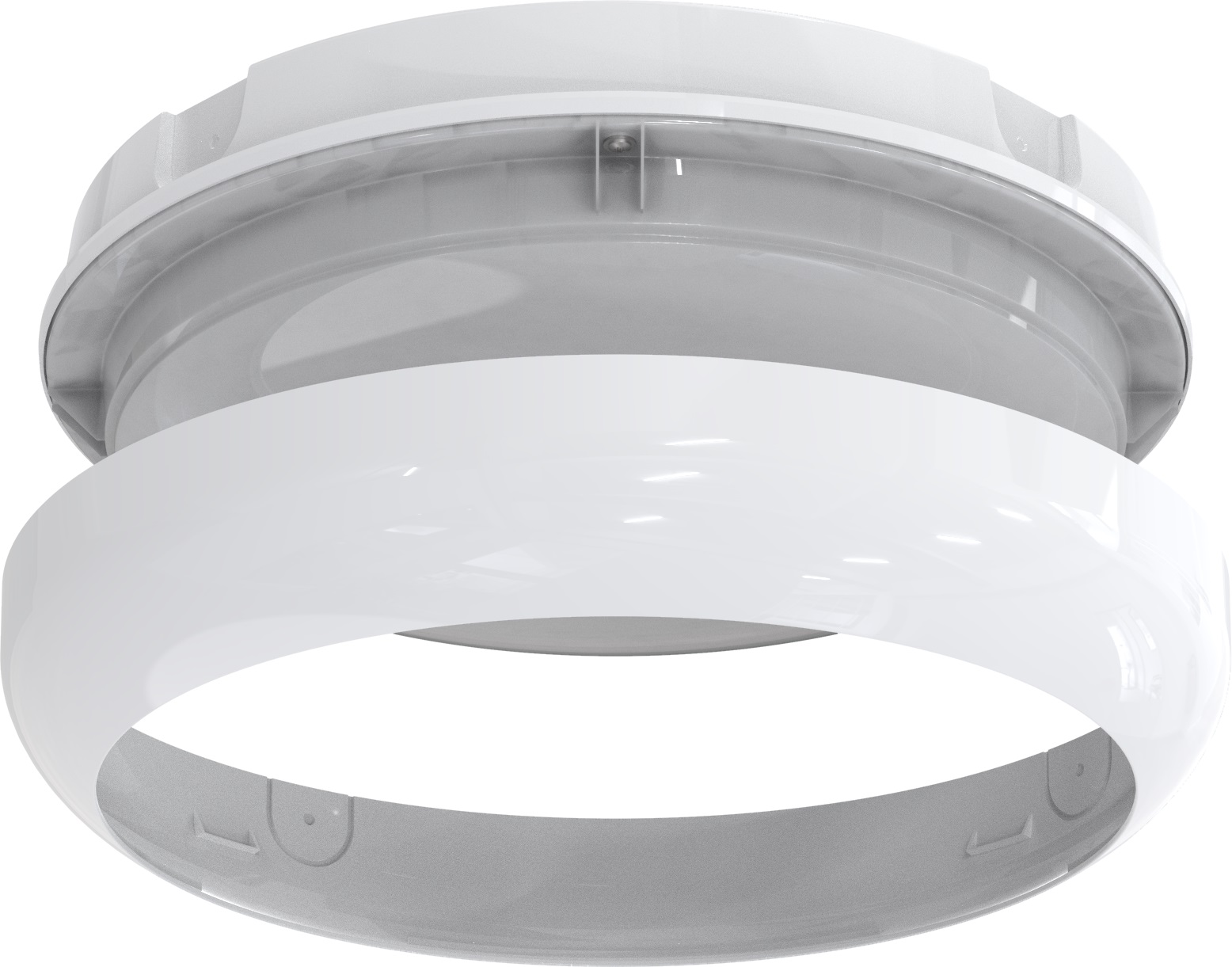 The slim and modern appearance of the Disco EVO has been retained, with all polycarbonate construction and an opal diffuser and white trim ring, with optional chrome, satin chrome or graphite trim ring accessories.
