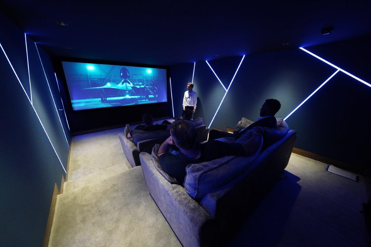 Reference Cinema – Visitors able to fully appreciate the improvements made to the visuals and audio. The equipment, which retails from around £95k upwards, includes a 15.4.6 channel audio system with five Bowers & Wilkins CWM8.3D Diamond Series in-wall speakers for the front soundstage, all angled towards the reference seating positions. An additional ten CI800 Diamond Series speakers complete the surround and height channels, resulting in sound that offers strong clarity and balance. The power behind the bass is massive, but precisely controlled, with four B&W CDA-2HD DSP amps,  each one dedicated to powering a CT SW15 15in sub with up to 1000W. Processing is provided by the new high-end Marantz AV 10, a 15-channel AV processor featuring DIRAC live calibration. For the picture, AWE has all three of Sony’s latest native 4K laser projectors installed, including the 10,000-lumen GTZ-380. A  notable upgrade to the room is the ADEO MovieMask LR, a 4m wide side masking screen capable of aspect ratios from 2.4:1 down to 16:9. AWE says ADEO screens can be tailored to suit every project, with a myriad of screen types, projection surfaces and aspect ratios all available to be specified on the configurator.