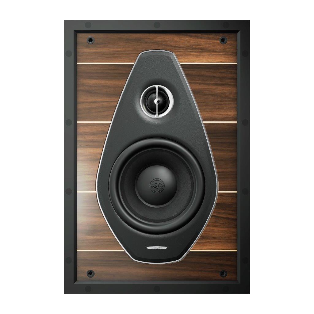 The Level 6 features the optional walnut wood front panels with maple inlays derived from the Olympica finish and creating a highly distinctive design in the in-wall speaker market.