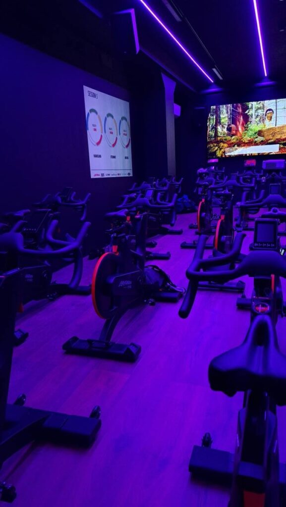The control system features Optimal Audio’s WebApp, enabling intuitive sound management directly from the instructor bike. Music playback comes via an Argon Audio streaming box, while HDMI connection from the wall-mounted screen delivers immersive ambient audio – including virtual cycling routes with road and environmental sounds – straight through the system.