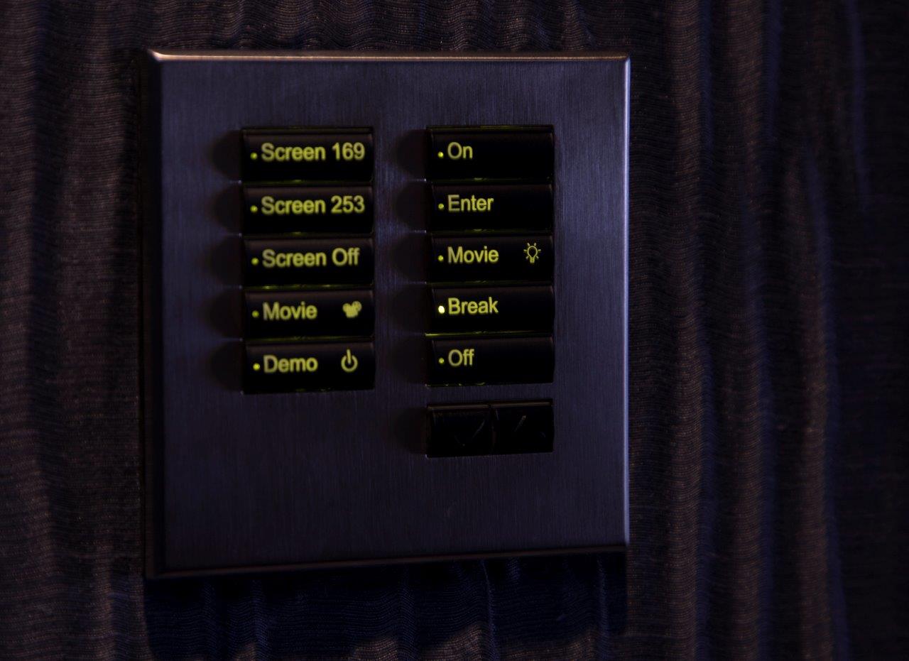A Screen Research XLR3 acoustically transparent screen was also included which allowed the main LCR speakers to be in the ideal positions behind the screen. Motorised side masking allows automatic aspect ratio change of the visible screen area and also provides full closure to protect the screen when not in use.