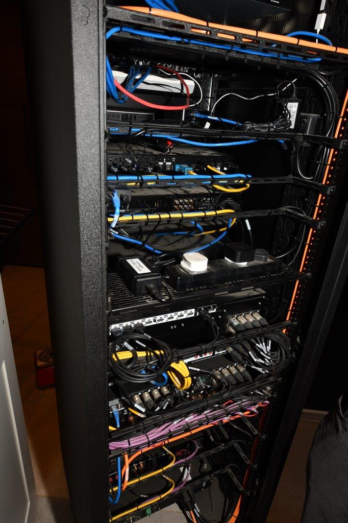Other features include Riello UPS units within the AV racks to allow for safe shutdown of equipment in event of a mains power failure and a Pakedge IP-controlled PDU allows remote rebooting of devices if required.