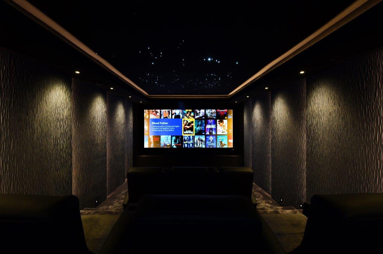 Other special touches included a bespoke starfield ceiling created with star positions carefully planned before the custom optical fibres were installed. This ensured that all the ‘stars’ avoided the speakers and other items above the false ceiling.