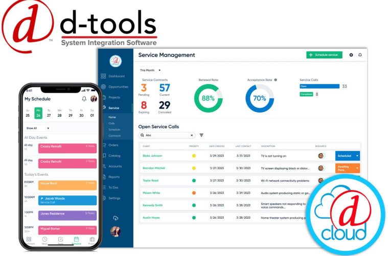 D-Tools has announced significant updates to its D-Tools Cloud platform. D-Tools has extended the capabilities of its web-based software to include a comprehensive service management suite, which enables recurring revenue opportunities for system integrators through the creation, sale, and management of service plans. Service plans can be designed in advance and presented as an option on any project proposal. Invoicing and payment collection are seamless within the D-Tools Cloud environment. Whether issued against a service agreement or as a one-off service call, service orders empower users to effectively schedule resources and assign tasks. Service technicians can expediently document problems found and actions taken, track their time, and complete the service call or indicate next steps, right from a mobile device.