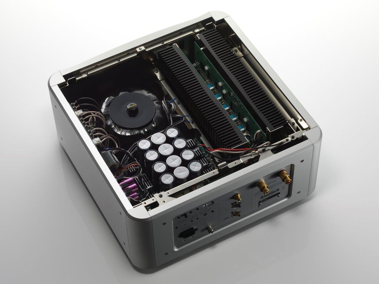 Everything about the M1X is done on an extraordinary scale, says its creator. The M1X’s incredible power is supported by Esoteric’s largest-ever power supply, which occupies the space of approximately 60% of the unit’s internal components. The 3,000VA/19kg main power transformer has been further refined in terms of rectification capability by implementing a heavier winding gauge. In addition, high-capacity Esoteric custom capacitors with a total capacity of 60,000μF have been adopted to refine the amplifier’s signature high-quality tone.