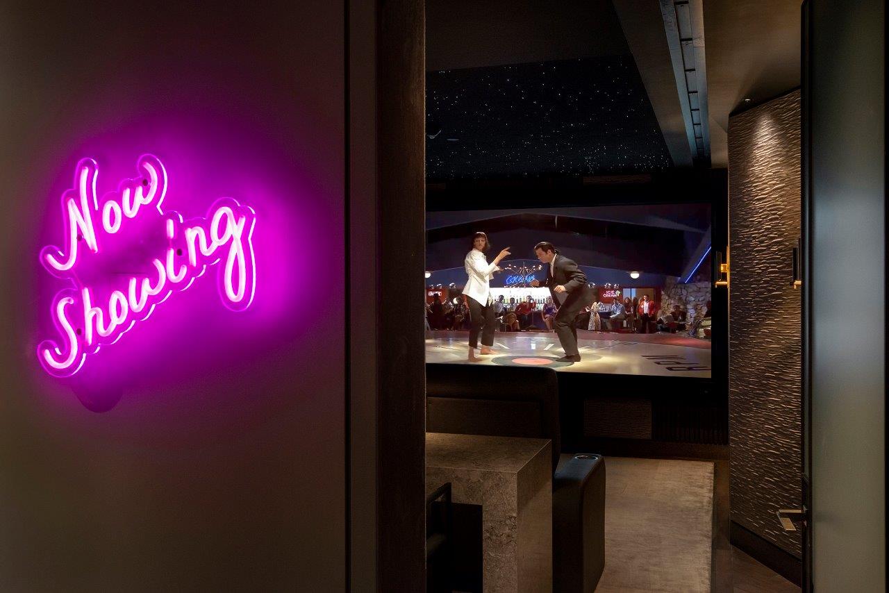 As impressive as the rest of the club is, EI was naturally eager to experience the cinema as the space had already built up a reputation for top end performance. Before the cinema could be created, the basement had some extremely effective soundproofing structures and products installed – as the cinema sits directly below where people live and sleep. Further protection is supplied by ‘the room within a room’ build approach so the cinema can be at reference levels and not be felt at all in the floors directly above. Diffusion and absorption products from Cinematech were also used in the creation of the space. A starlight ceiling was also installed, providing some added aesthetic appeal.