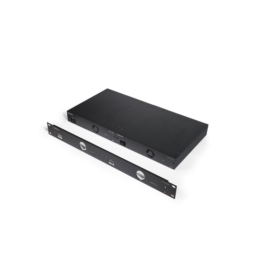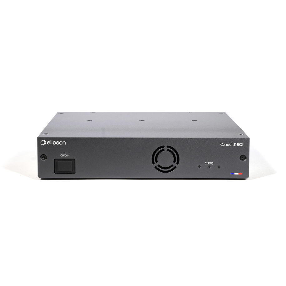 It can be activated in mono mode, delivering 250W RMS and 500W peak at 8 ohms. It is also compatible with 100V loudspeakers for sound reinforcement in large spaces. With compact dimensions of 215 x 44.5 x 220 mm and a weight of just 2 kg, the Elipson Connect 2130 Xi amplifier fits easily into any professional environment. In addition, an optional rack-mountable front panel allows 2 Connect 2130 Xi to be integrated, providing a neat installation in a standard rack.