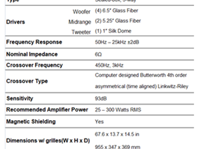 The 8600eC features internally braced .75in non-resonant MDF cabinets with seven new state-of-the art drivers configured in a D’Appolito/M-T-M vertical array; four 6.5in fiberglass woofers, two 5.25in fiberglass mid-drivers, and an advanced 1in silk dome tweeter with a powerful neodymium magnet. The midrange and tweeter drivers are internally isolated within their own airtight sub-enclosure.