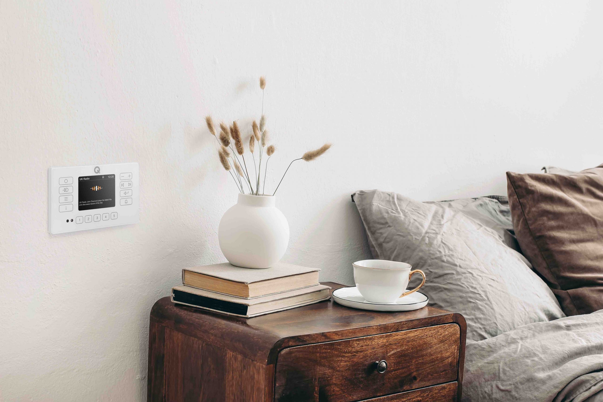 To blend seamlessly into any interior, the main wall panel arrives in two classic colours: black and white. Boasting touch sensitive controls and a sharp 3.2in colour display that shows track, artist and album name, an internal light sensor can be configured to automatically set the display brightness. Owners can also manually set the on and dim levels, an important feature when using E120 in bedrooms to avoid background light during sleeping hours. The E120 also features an alarm function.